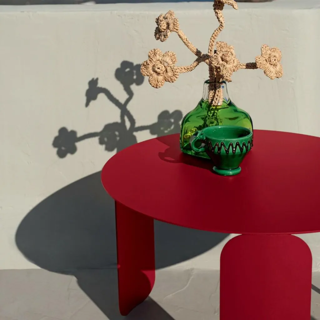 Mit seinen sanft abgerundeten Linien setzt der Tisch stilvolle Akzente in jeder Outdoor-Umgebung. Die großzügige runde Tischplatte mit einem Durchmesser von 60 cm besteht aus widerstandsfähigem Aluminiumblech, während das Gestell aus dem gleichen Material für Stabilität sorgt. Dank der wetterfesten Beschichtung ist der Tisch besonders langlebig und ideal für den Außenbereich geeignet. Mit einer Höhe von 38,5 cm bietet der Bebop Garten-Beistelltisch Ø60cm die perfekte Ablagefläche für Getränke, Snacks oder Dekoration – sei es auf der Terrasse, dem Balkon oder im Garten. Das leichte Gewicht von 11,9 kg ermöglicht es, den Tisch flexibel zu platzieren und je nach Bedarf neu zu arrangieren. Der Tisch ist in einer Vielzahl von Farben erhältlich, von dezenten bis hin zu leuchtenden Nuancen, und lässt sich perfekt mit anderen Möbelstücken aus der Bebop-Kollektion von Fermob kombinieren. Besonders schön sind dabei Kombinationen von verschieden großen Modellen in unterschiedlichen Farben.
