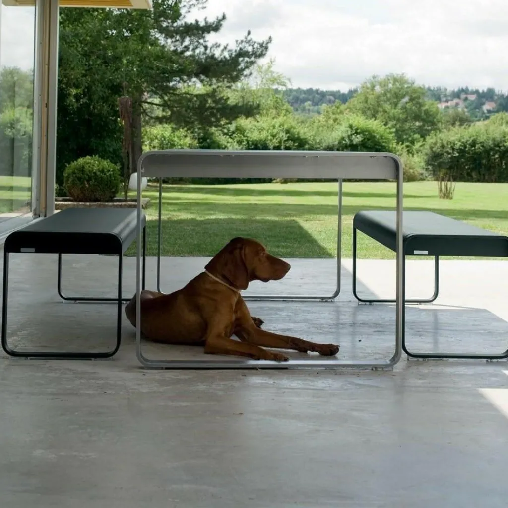 Mit ihrer großzügigen, an den Kanten abgerundeten Sitzfläche wirkt die Bellevie Gartenbank wie eine Einladung zum Platznehmen. Damit passt sie perfekt an die Hauswand neben dem Eingang. Aber auch für einen Platz unter freiem Himmel ist die Designbank ideal. Denn ihre Sitzfläche besteht aus robustem Stahlblech, dessen elektroverzinkte Oberfläche eine langlebige Witterungsbeständigkeit garantiert. Zudem steht die Bellevie Gartenbank auf zwei Rahmen aus flachem Aluminium, die für eine hohe Stabilität sorgen. Ihr formales Design fällt mit weichen Kurven auf. So findet die Form der Sitzkante in den Fußrahmen ihre Fortsetzung. Dies macht die Bellevie Gartenbank zu einem attraktiven Blickfang. Sie passt nicht nur in den Garten, sondern ebenso gut in eine Hotelanlage, einen Park oder auf öffentliche Plätze.