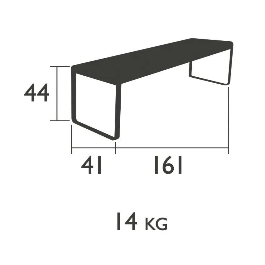 Die Bellevie Gartenbank hat eine Länge von 161cm. Sie ist 41cm breit. Ihre Sitzhöhe misst 44cm. Die kompakte Gartenbank wiegt 14kg. Es stehen viele verschiedene Farben zur Auswahl. Daneben ist eine Gartenbank mit Rückenlehne zu haben sowie Tische und Stühle aus der Serie Bellevie.