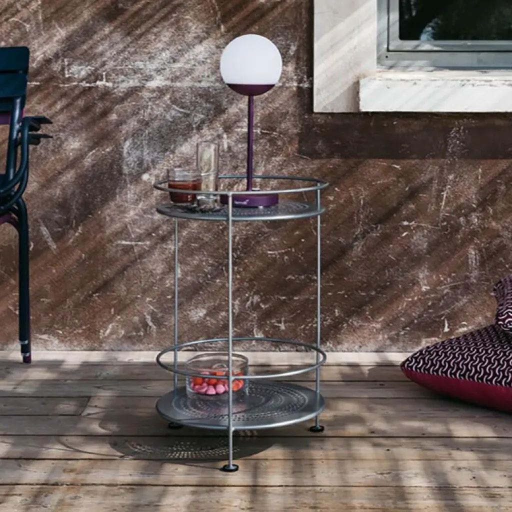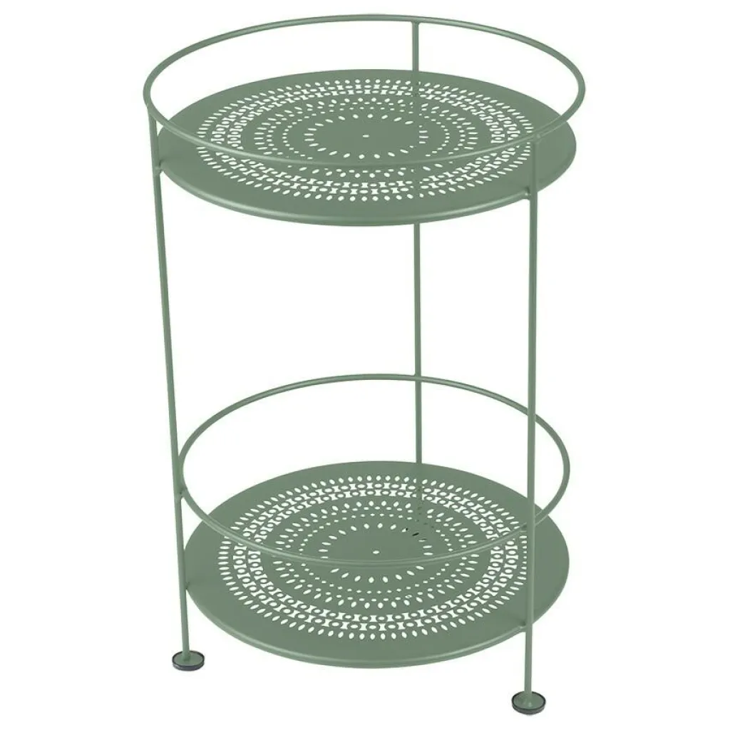 Der wetterfeste Guinguette Beistelltisch mit doppelter Abstellfläche wurde von Fermob entworfen.