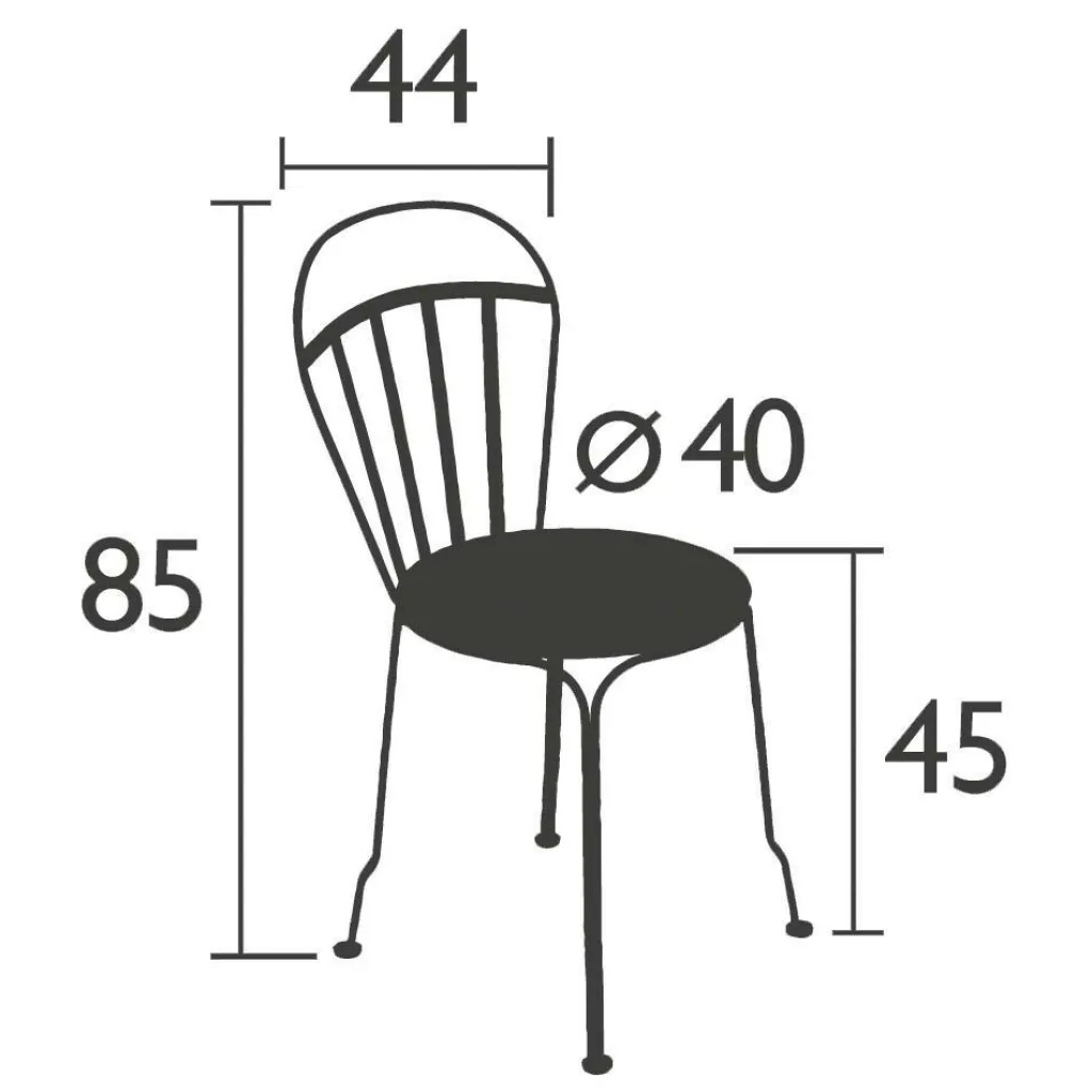 | Abmessungen | Breite: 44cm Höhe: 85cm Tiefe: 40cm Sitzhöhe: 45cm Höhe Rückenlehne: 85cm |