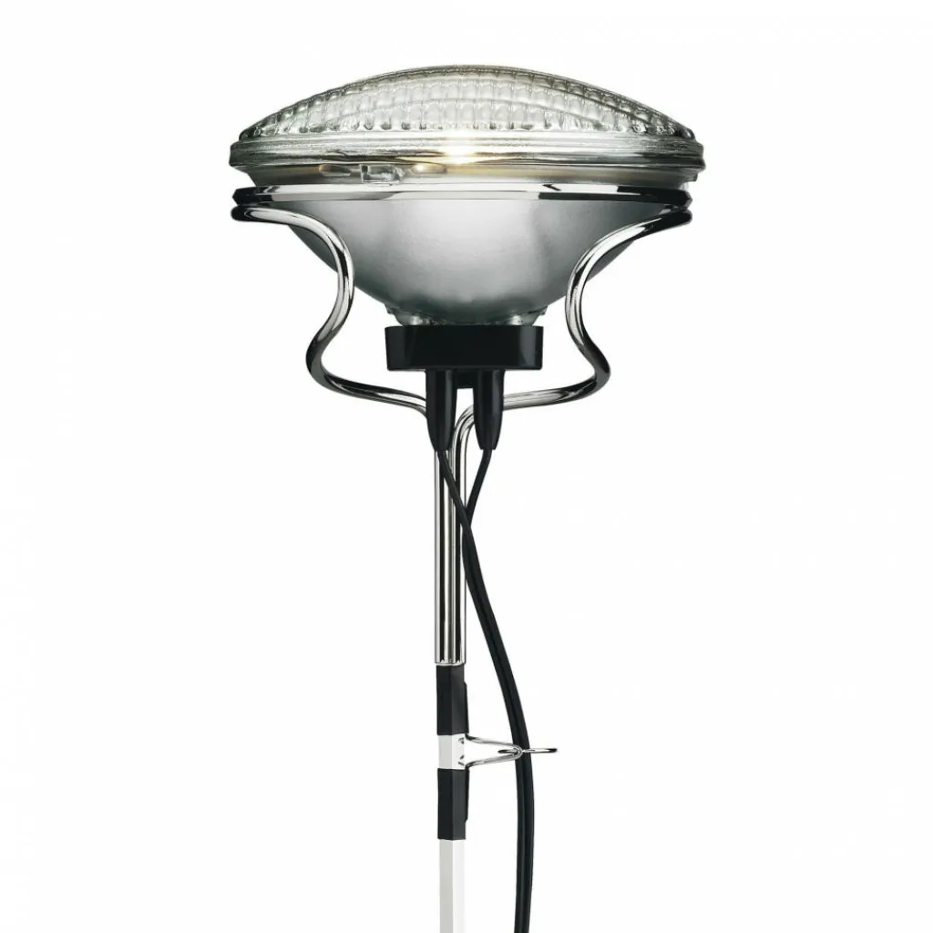Die Toio Stehleuchte wurde von Achille & Pier Giacomo Castiglioni für die Marke Flos entworfen. Das außergewöhnliche Modell wurde im Jahr 1962 erstmals präsentiert. Es ist im Industriestil gestaltet und passt in jedes Umfeld.