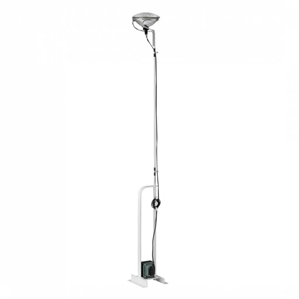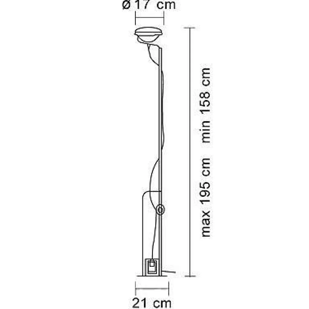 Die Toio Stehleuchte wird mit einem 247 cm langen Kabel an den Stromkreis angeschlossen. Das Modell braucht ein Leuchtmittel mit einer GX16-Fassung, das im Lieferumfang enthalten ist. Die Höhe beträgt 195 cm. Das Modell hat ein Gewicht von 8,2 kg.