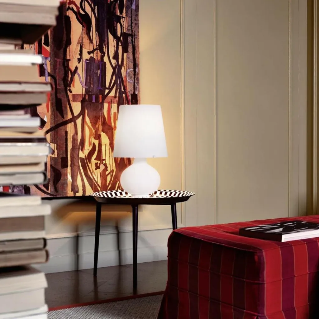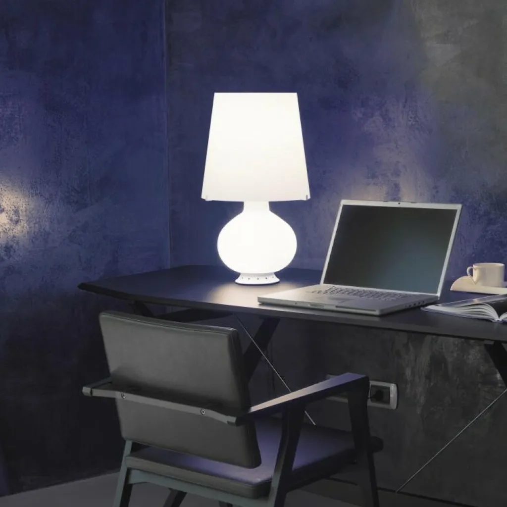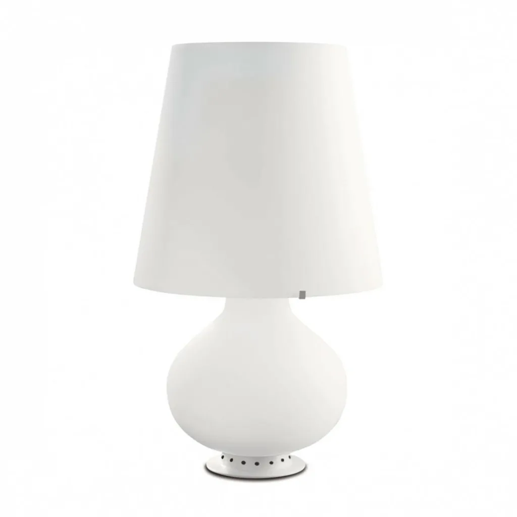 Sie sehen hier eine klassische schön geformte Tischlampe, deren Besonderheit darin besteht, aus Muranoglas hergestellt zu sein. Die hier gezeigte Fontana 1853 Medium Tischleuchte hat einen Durchmesser von Ø32cm und eine Höhe von 53cm. Die Tischlampe bieten wir in der Farbe Opalweiß an, siehe unsere Fontana 1853 Medium „Produktvariante“.