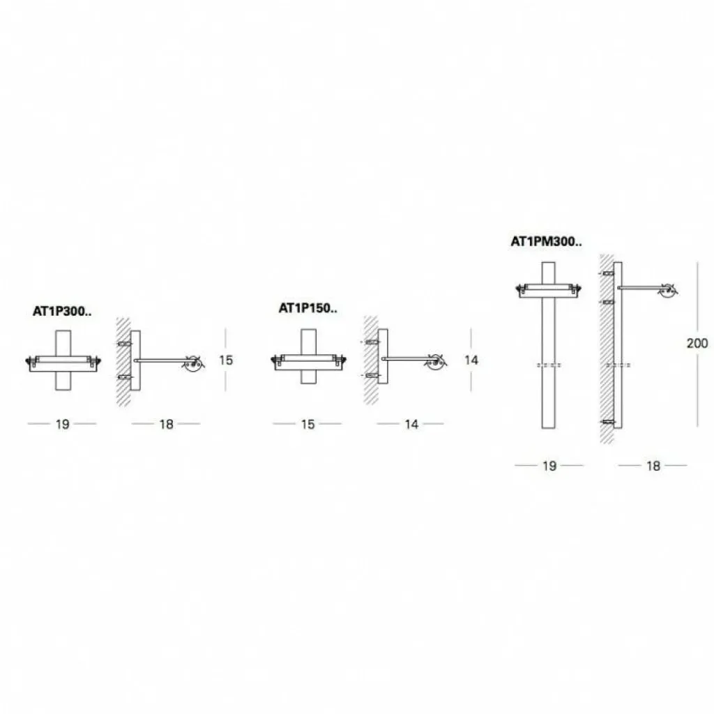 Die Scintilla AT1P300 Wandleuchte hat eine Breite von 19 cm. Die Tiefe beträgt 15 cm und die Höhe 18 cm.