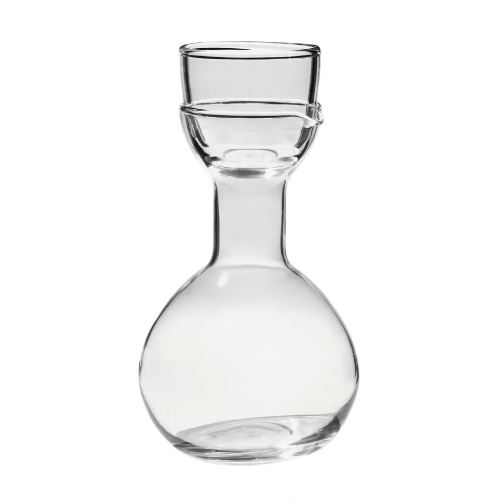 Die feine Ausarbeitung und das durchgängige Design stammen aus der Feder von Linnea Ek Blæhr, deren Pinho Kollektion sich durch klare Linien und funktionales Design auszeichnet. Mit einem Fassungsvermögen von 1,1 Litern und einer Höhe von 22,5 cm bietet die Pinho Karaffe mit Glas ausreichend Platz für Wasser, Saft, Kaffee oder Tees. Das Besondere: Das beiliegende Glas fungiert nicht nur als Trinkgefäß, sondern passt perfekt auf die Öffnung der Karaffe und dient so zugleich als praktischer Deckel. Diese doppelte Funktion macht das Set ideal für Nachttisch, Büro oder Gästezimmer – überall dort, wo Sie stilvoll und griffbereit servieren möchten. Die Karaffe ist – wie das Glas – spülmaschinenfest und aus robustem, langlebigem Glas gefertigt. Beides wird nach alter Tradition mundgeblasen. Kleine Blasen und Strukturunterschiede sind ein natürliches und charaktervolles Ergebnis dieser Handwerkskunst. Dank des doppelwandigen Glases sind sowohl die Karaffe als auch das Glas auch für heiße Getränke geeignet. Mit ihrer hochwertigen Verarbeitung und dem bewusst minimalistischen Charakter ist die Pinho Karaffe mit Glas nicht nur ein praktischer Alltagsbegleiter, sondern auch ein Stück nordisch inspirierter Designkultur – handgefertigt, langlebig und durchdacht bis ins Detail.