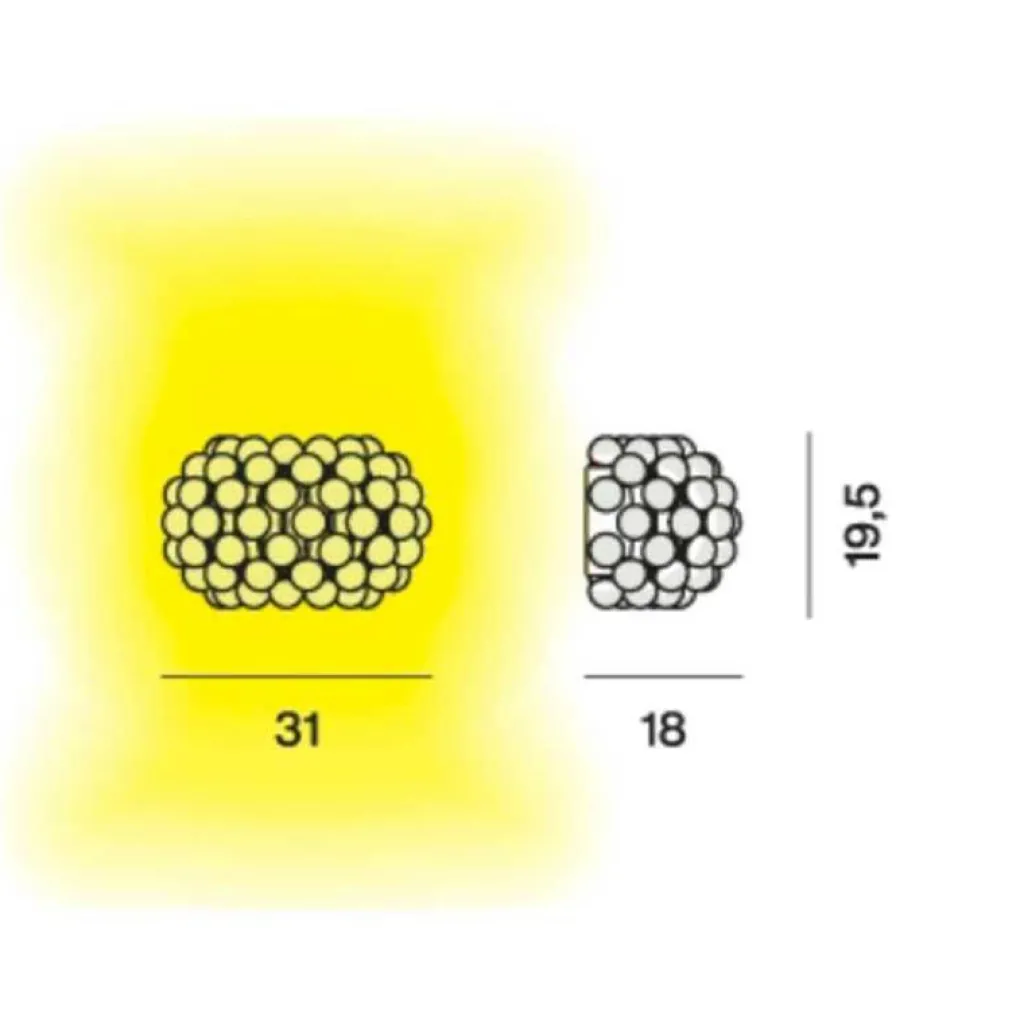 Die Caboche Plus Piccola Wandleuchte wurde von Patricia Urquiola und Eliana Gerotto für die Marke Foscarini entworfen. Sie gehört zu einer ganzen Kollektion mit vielen Tisch-, Stand- und Pendelleuchten, die sich durch ihr innovatives Design auszeichnen. Als Hommage an edlen Perlenschmuck verwendeten die beiden Designerinnen Glasperlen um den Leuchtenschirm zu schmücken.
