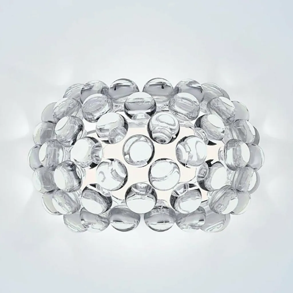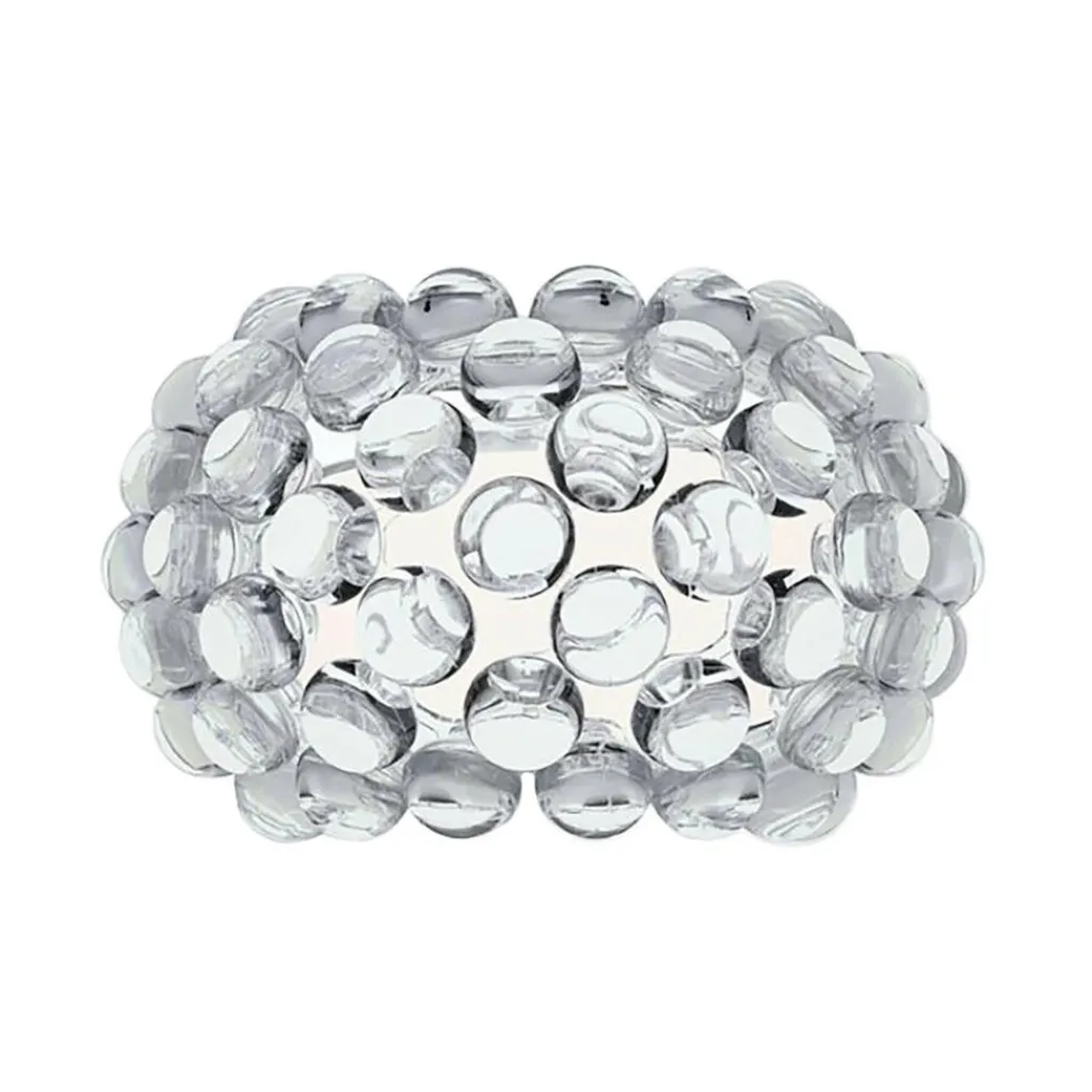 Die Caboche Plus Piccola Wandleuchte wurde von Patricia Urquiola und Eliana Gerotto für die Marke Foscarini entworfen. Sie gehört zu einer ganzen Kollektion mit vielen Tisch-, Stand- und Pendelleuchten, die sich durch ihr innovatives Design auszeichnen. Als Hommage an edlen Perlenschmuck verwendeten die beiden Designerinnen Glasperlen um den Leuchtenschirm zu schmücken.