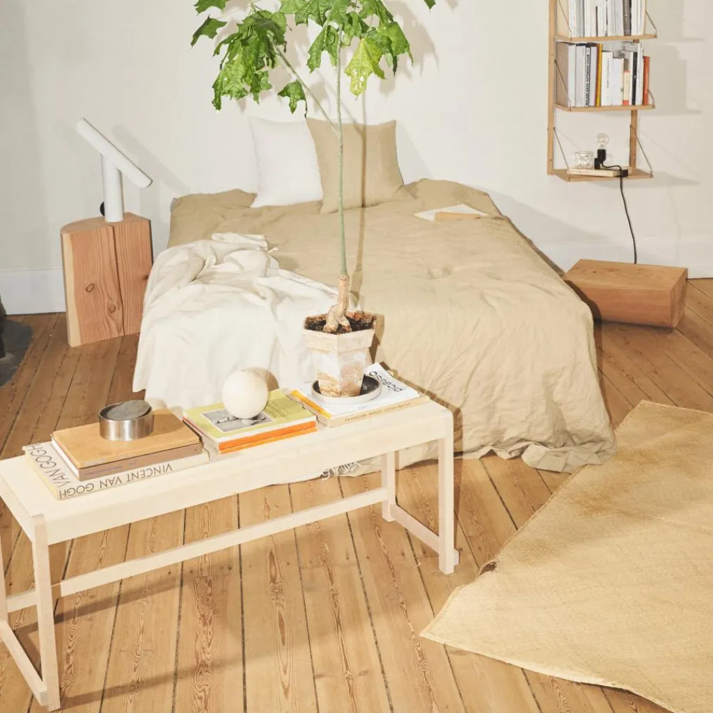 Mit ihrer breiten, ebenen Sitzfläche wirkt die 01 Bank einfach. Deren hohe Kante lässt sie robust erscheinen. Auch die kantig geschnittenen, geradlinigen Beine mit ihren lattenartigen Verstrebungen schenken der Designbank einen belastbaren Charakter. Sanfte Rundungen an der vorderen und hinteren Sitzkante versprühen gleichzeitig einen bequemen Touch. Hergestellt aus hochwertigem Birkenholz hat die 01 Bank eine zarte natürliche Maserung. Ihrer geölten Oberfläche verdankt sie zudem eine angenehm weiche Haptik. Im Laufe der Zeit entwickelt sich eine einzigartige Patina. Damit macht sich die 01 Bank ebenso gut am Küchentisch wie neben der Garderobe im Vorzimmer. Sie eignet sich nicht nur zum Sitzen, sondern lässt sich auch als Beistelltisch verwenden und passt so in die Lobby eines Designhotels, in den Warteraum einer Praxis oder in den Ausstellungssaal einer Galerie.