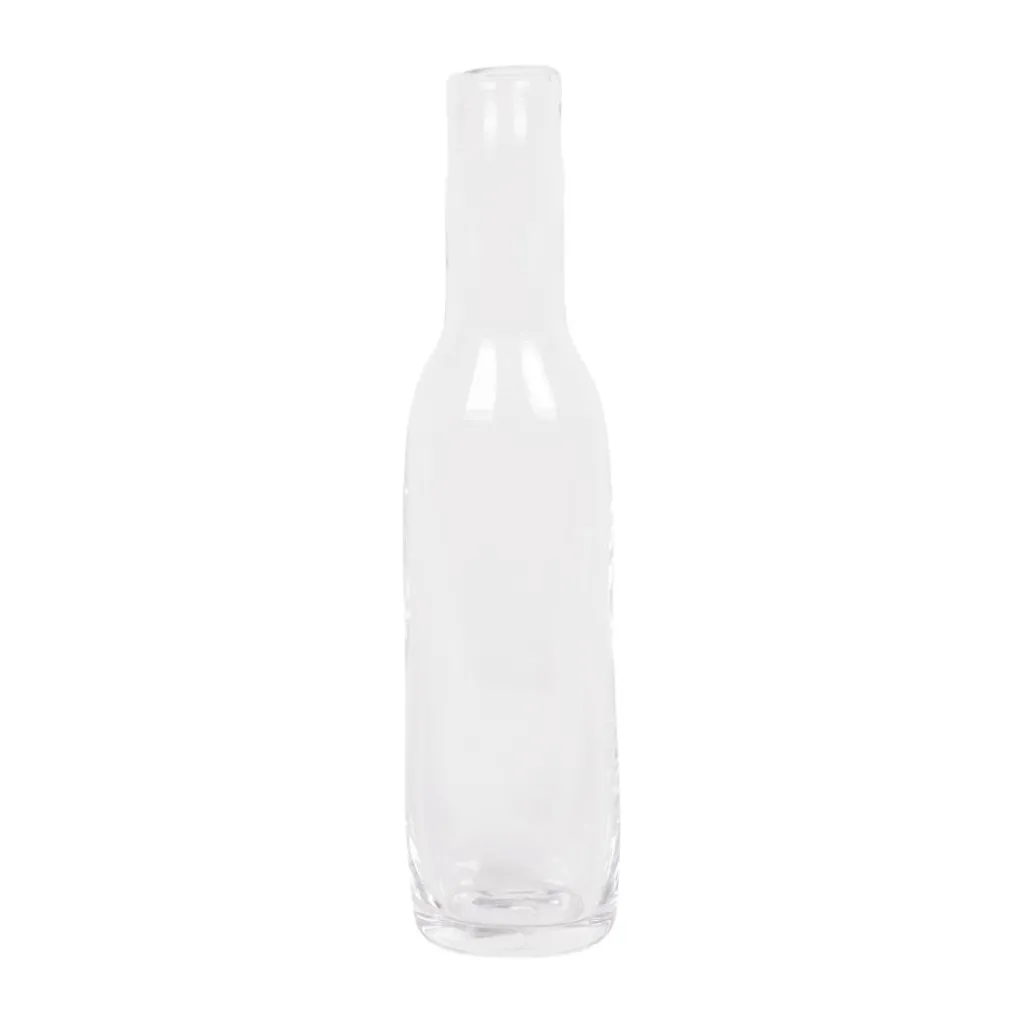 Die Kombination aus Funktionalität und ansprechender Optik zeichnet die Kollektionen des Studios 0405 aus. In Anlehnung an ihre Stilllebenvorbilder besticht die leicht rechteckige Flasche mit ihrem langen und schmal abgesetzten Flaschenhals mit einer besonderen Haptik. Die leicht unregelmäßige Form entsteht durch die mundgeblasene Handarbeit jeder Flasche in einer tschechischen Glasbläserei. Jedes dieser Designstücke ist somit ein Unikat. Die Flasche aus Klarglas ist 30cm hoch und hat einen Durchmesser von 4cm bei 0,7kg Gewicht. Sie bringt ein Fassungsvermögen von 360ml mit. Ihr spülmaschinengeeignetes Material hält Temperaturen bis 70°C stand. Das macht sie zum praktischen Begleiter als kleiner Getränkekrug auf dem Esstisch im Alltag. Ebenso kann sie als dekorative Flaschenvase für einen kleinen Blumenstrauß oder saisonal immer wieder neu arrangierbaren Trockenblumen oder Zweigen dienen.