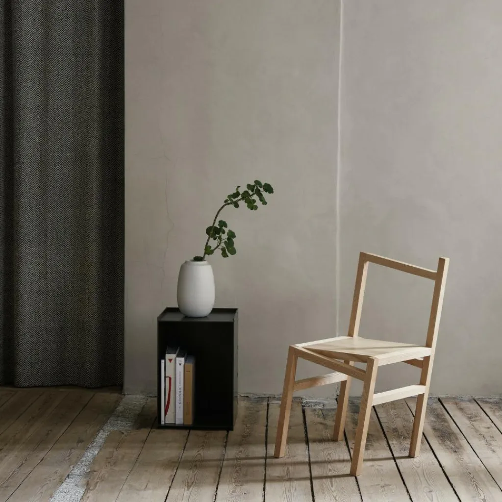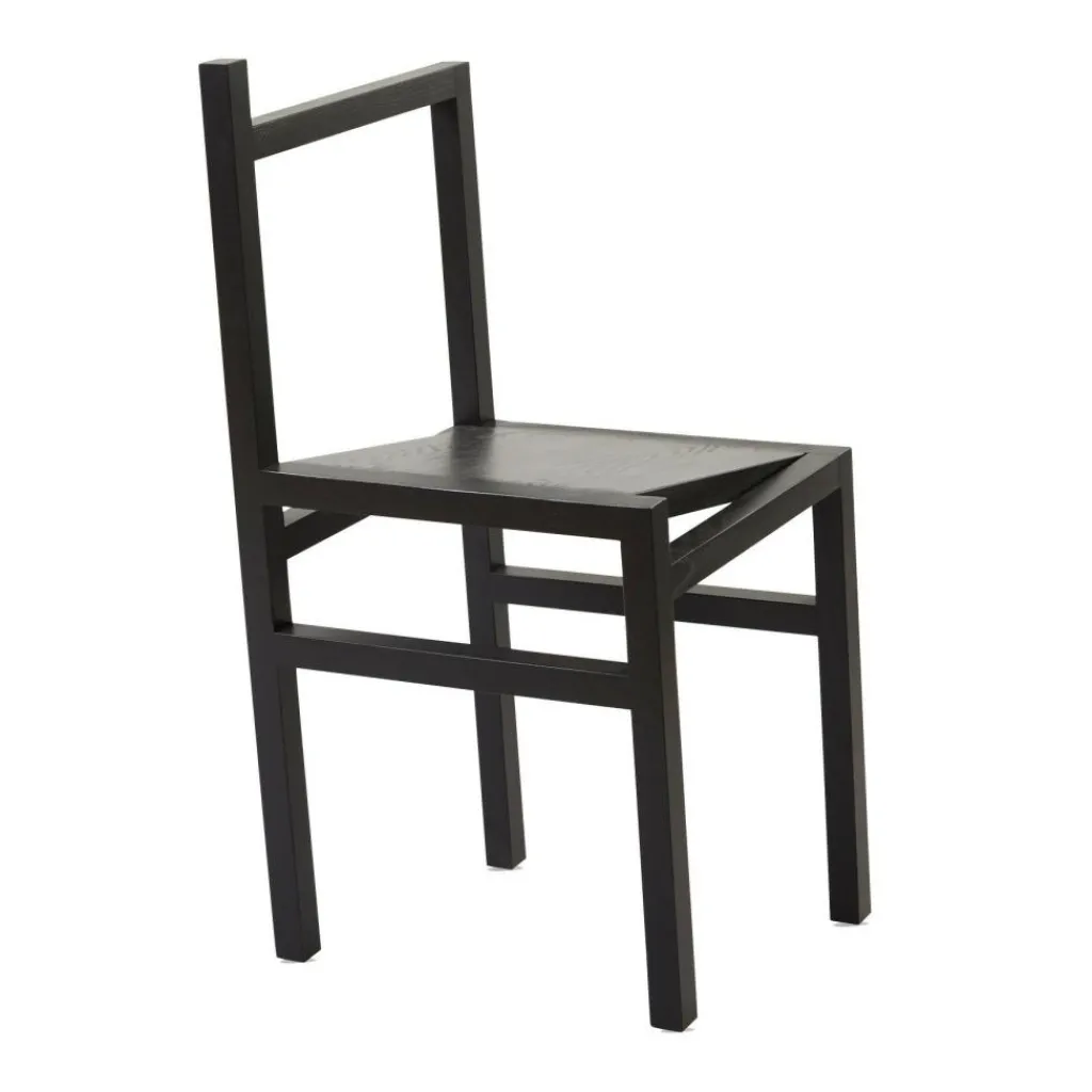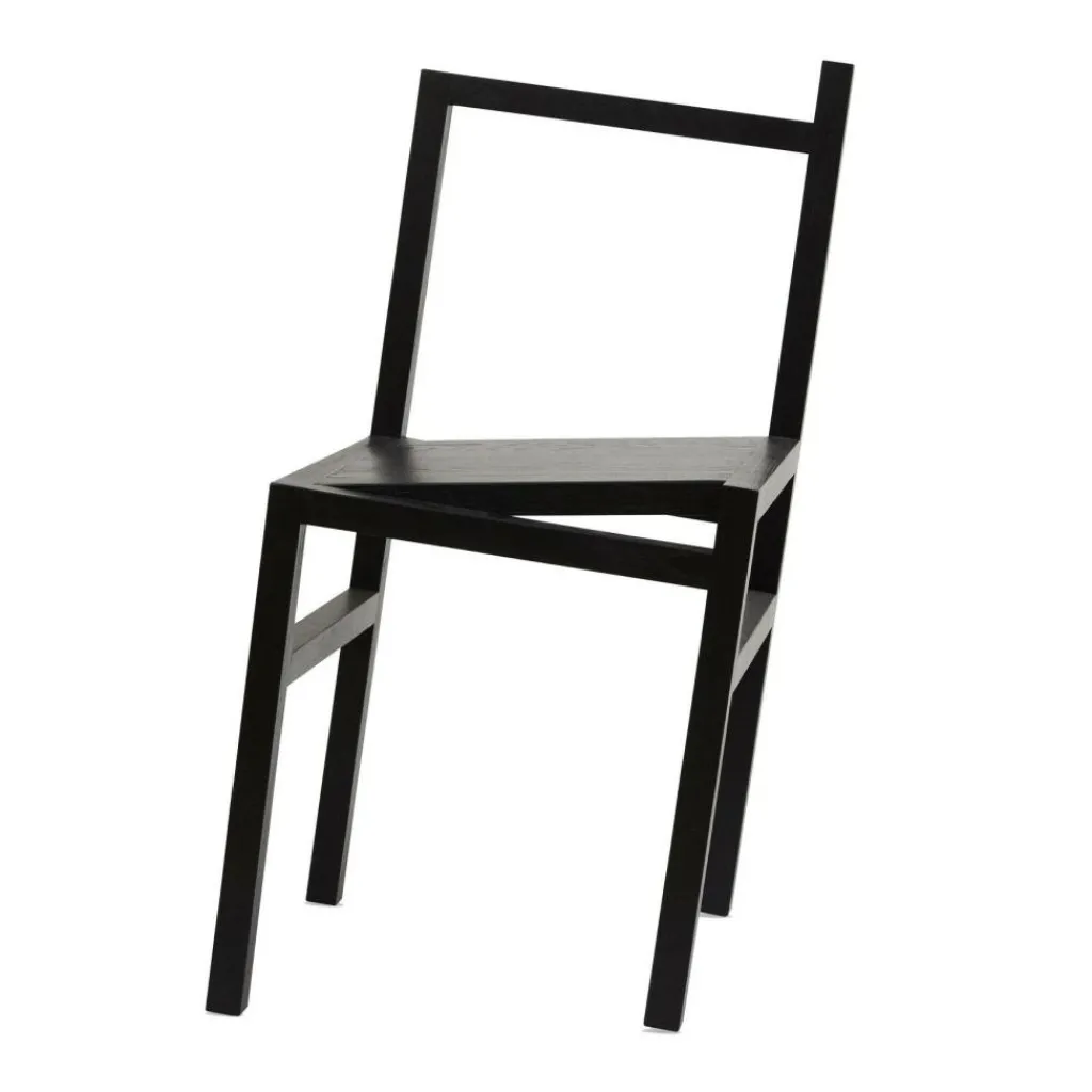 Der 9.5° Stuhl wurde von Rasmus B. Fex für die Marke Frama entworfen. Viele sehen zweimal hin, bevor sie auf dem Möbel mit schräger Optik Platz nehmen: Obwohl er so aussieht, als könnte er jeden Moment umkippen, überzeugt er mit bestem Sitzkomfort.