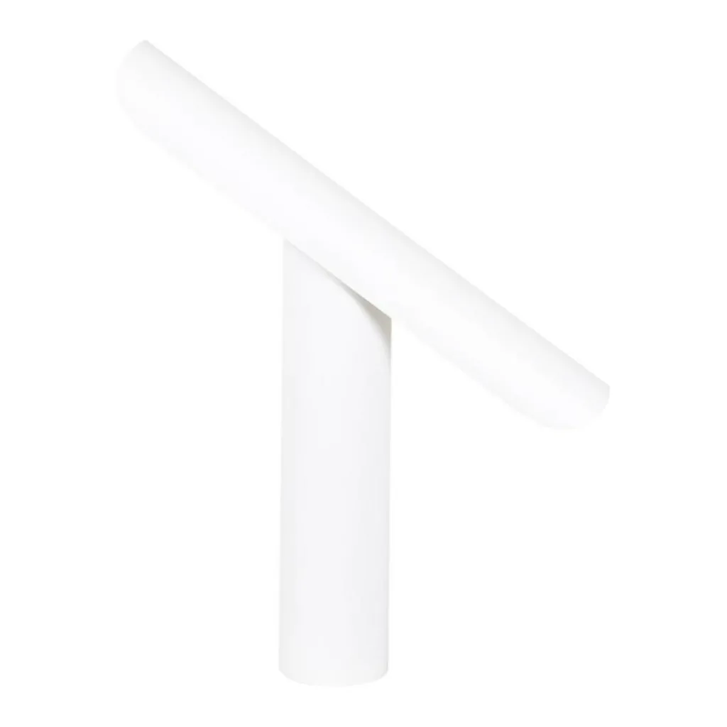 Die T-LED Tischleuchte besteht aus Stahl und ist in verschiedenen Farben erhältlich. Sie ist aus zwei Röhren gefertigt, die in der Ausgangsposition im rechten Winkel zueinander stehen. Mithilfe eines Gelenks lässt sich der horizontale Teil kippen. Somit ist es möglich, den Lichtstrahl genau dorthin zu lenken, wo er gebraucht wird. Perfekt macht sich die Leuchte auf dem Schreibtisch im Büro oder dem Nachttisch im Schlafzimmer. Dank der schmalen Form kann sie jedoch auch auf einem Regal eingesetzt werden. Über einen kleinen Knopf, der sich am unteren Ende des Fußes befindet, kann man die T-LED Tischleuchte dimmen.