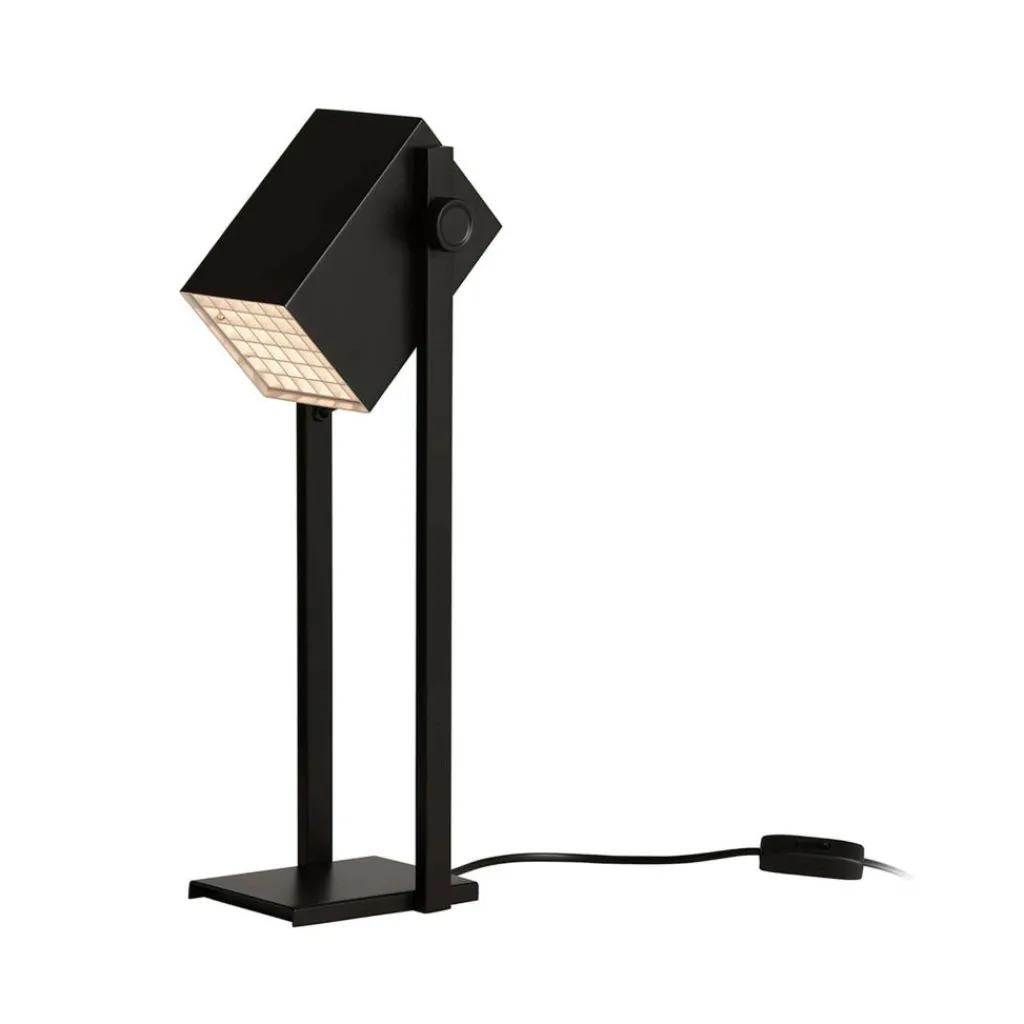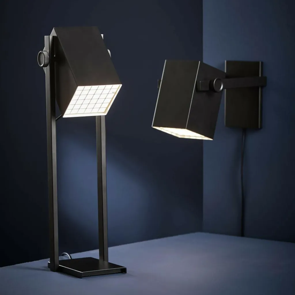 Ein funktionales und markant-puristisches Design zeichnet die BF Quadro Tischleuchte aus. Der als kantiger Quader gearbeitete Leuchtenschirm wird von zwei vertikalen Streben getragen, die an der rechteckigen Sockelplatte befestigt sind. Das Gitterdesign des Diffusors ist ein schönes Detail der Leuchte. Das Besondere sind die Drehgelenke zu beiden Seiten, sodass der Leuchtenschirm auf horizontaler Achse individuell geschwenkt werden kann. So ergibt sich je nach Ausrichtung ein direktes Licht zum Arbeiten oder Lesen oder ein Richtung Wand oder Decke gerichtetes Stimmungslicht als indirekte Lichtquelle.