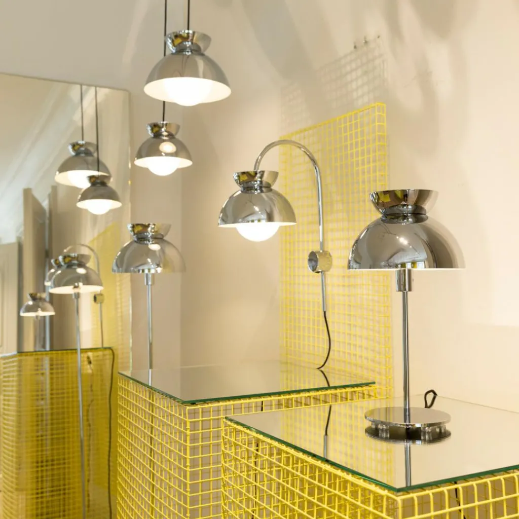 Drei Halbkugeln prägen die Butterfly Wandleuchte.Zwei davon sind mit der gewölbten Seite aneinander befestigt. Sie bestehen aus lackiertem Metall und bilden den Leuchtenschirm. Die Oberfläche ist wahlweise matt oder glänzend und in verschiedenen Farben zu haben. Die dritte Halbkugel dient als Diffusor. Dieser besteht aus opalem Glas und ragt unter dem Leuchtenschirm heraus. Das Licht dringt hier blendfrei nach unten und seitlich aus und spiegelt sich in der glänzenden Oberfläche. Das ausgeklügelte Design enthält auch Löcher im oberen Teil des Schirms. Daraus strahlt Licht nach oben ab und zeichnet faszinierende Muster an die Decke. Die Butterfly Wandleuchte eignet sich perfekt als Zonenbeleuchtung im Flur, Schlafzimmer, Büro und in jedem weiteren Raum. Sie wird mit einer runden Halterung mit Schalter an der Wand befestigt. Ein gebogener Stab verbindet die Halterung mit dem Leuchtenschirm.