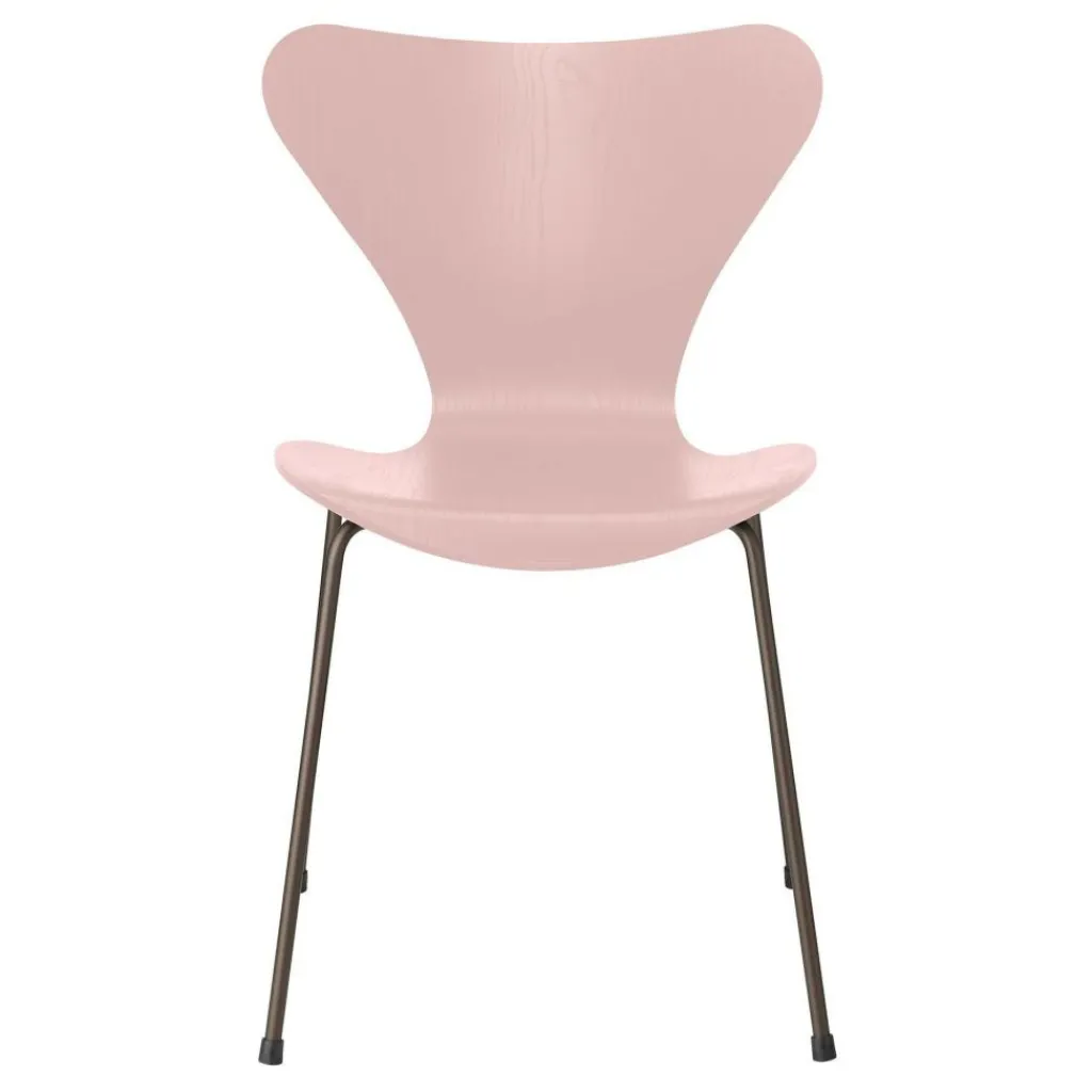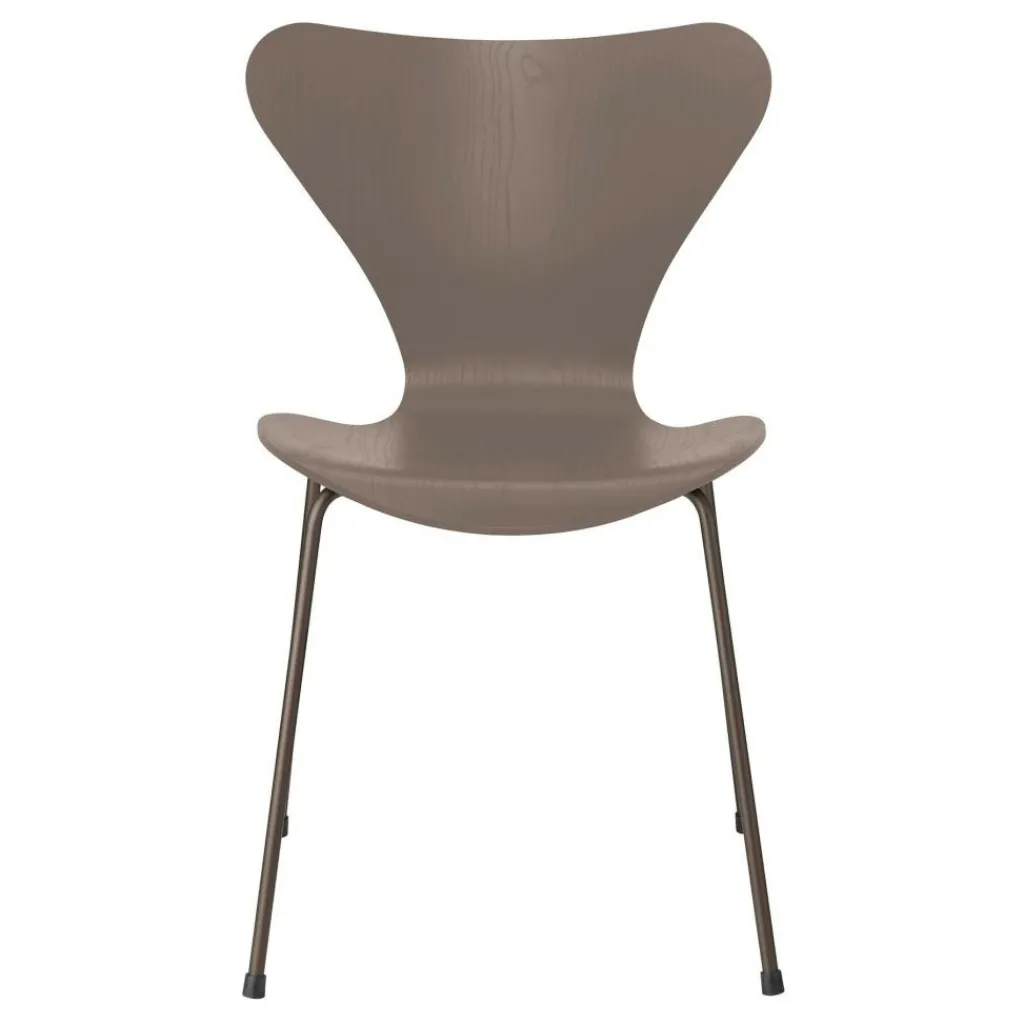 Da der Serie 7™ Stuhl gefärbte Esche Braun Bronze stapelbar ist, eignet er sich perfekt für den Veranstaltungsbereich und Büros. Nach dem Gebrauch kann er platzsparend verwahrt werden. Er eignet sich jedoch auch für das private Wohn- und Esszimmer. Die Sitzgelegenheit ist mit Sitzschalen in verschiedenen Farben erhältlich. Zum Blickfang wird das filigrane pulverbeschichtete Stahlrohrgestell mit vier Füßen. Darauf ist die Sitzschale aus formgepresstem Furnier befestigt. Das innovative Verfahren arbeitet mit der Einwirkung von Dampf. Dadurch kann die Sitzfläche und Rückenlehne aus einem Stück gefertigt werden. Die Taillierung im unteren Bereich der Rückenlehne trägt zum harmonischen Gesamtbild bei.