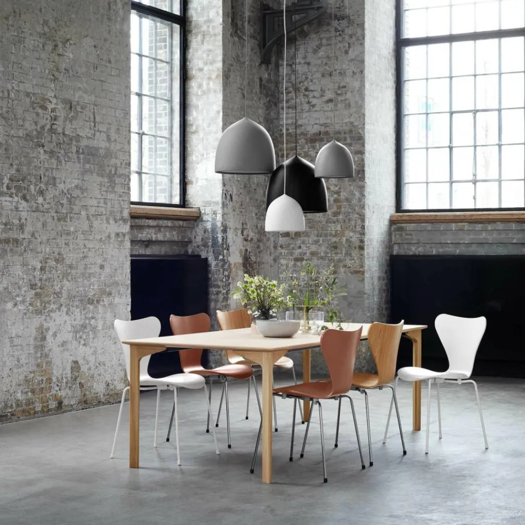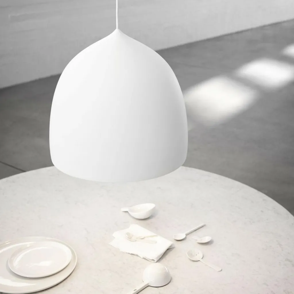 Die Suspence P1 Pendelleuchte der Marke Fritz Hansen strahlt ihr harmonisches Licht direkt nach unten aus und der integrierte Diffusor ermöglicht dabei eine gleichmäßige Streuung des weichen Lichtes. Somit ist die Leuchte beispielsweise ideal für den Esstisch geeignet und erweist sich dank ihrer fließenden Form bei Gästen als echter Hingucker. Eine Montageanleitung in deutscher Sprache ist im Lieferumfang enthalten.