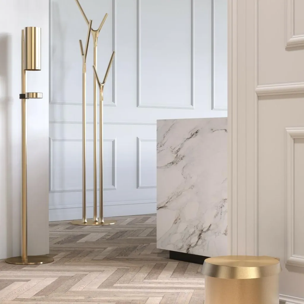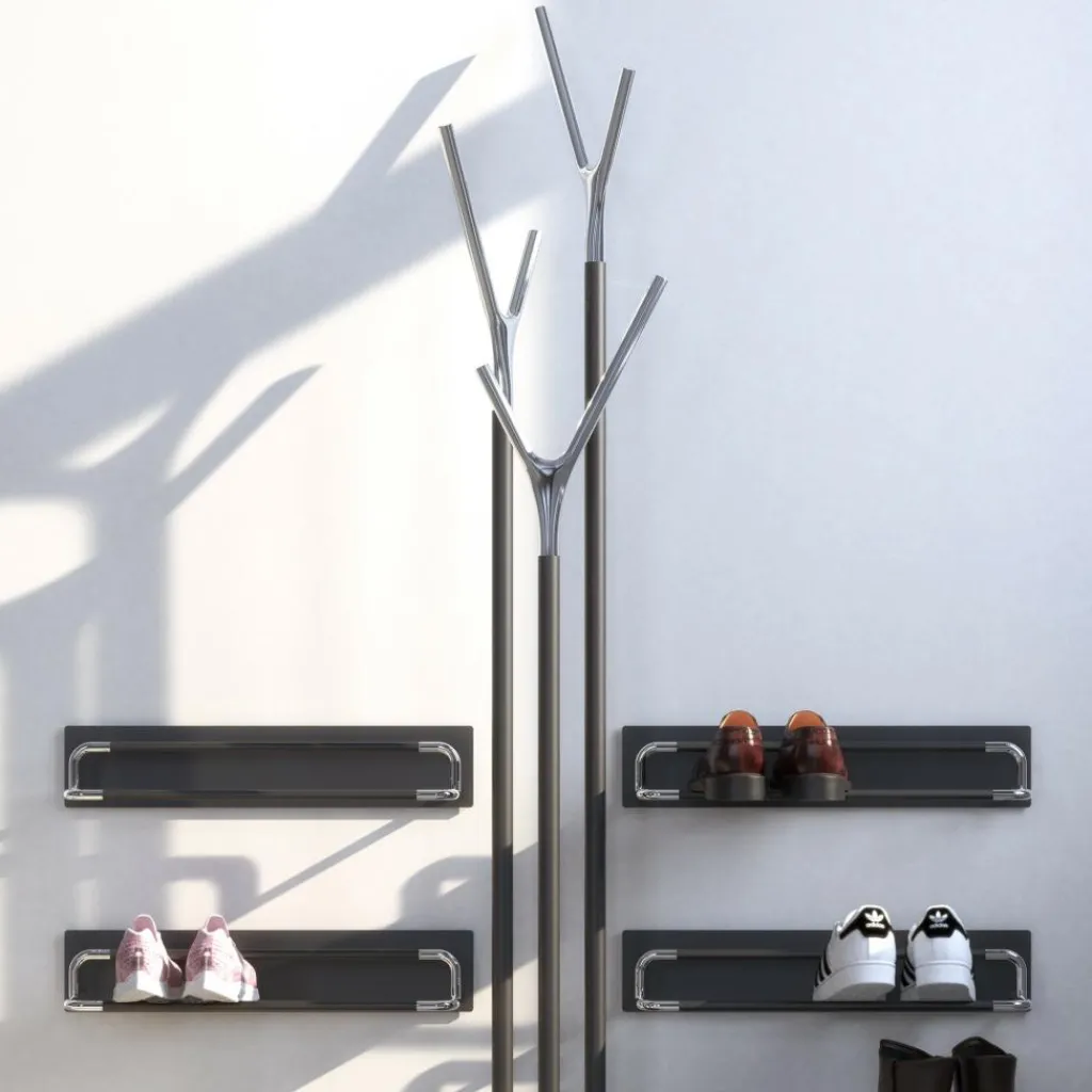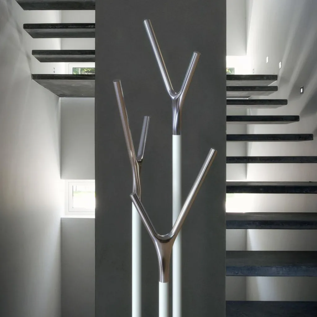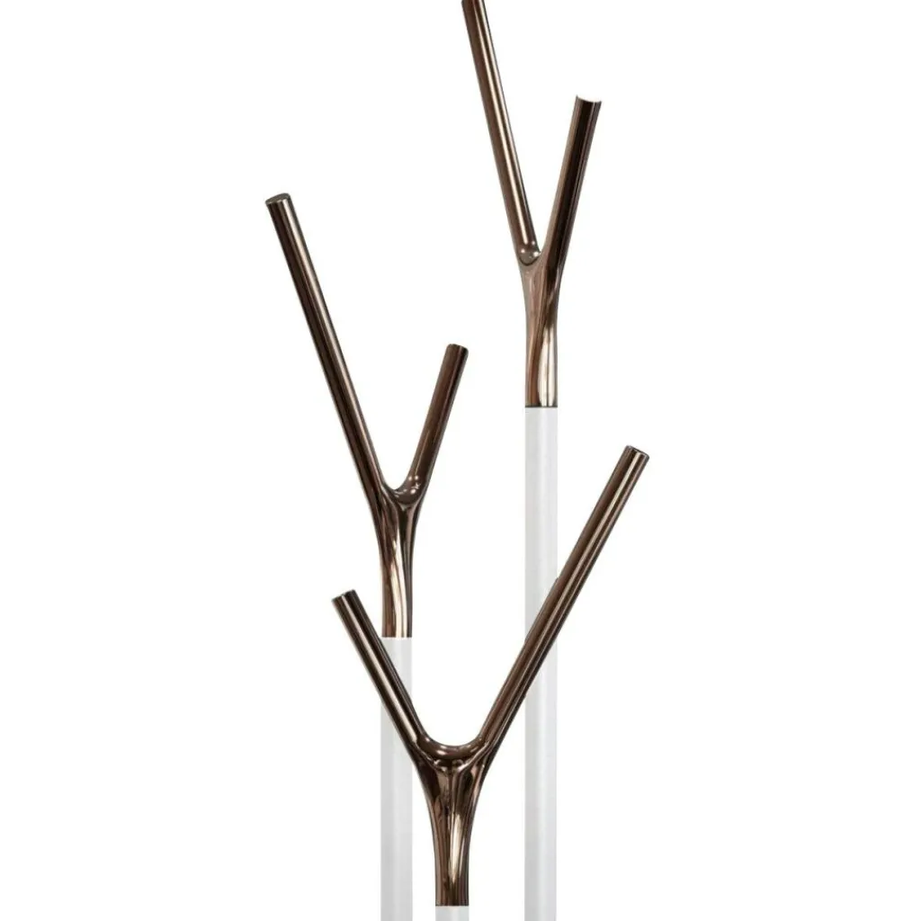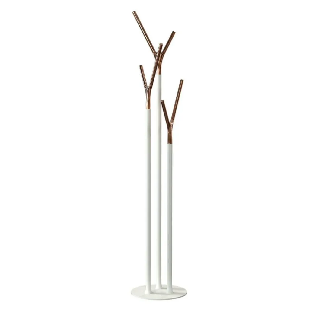 Wegen seines auffallenden Designs hat der Wishbone Kleiderständer den renommierten Red Dot Design Award und den Good Design Award gewonnen. Das Modell wird aus Edelstahl hergestellt und ist in verschiedenfarbigen Ausführungen zu haben. Die Oberfläche des Gestells ist wahlweise matt oder gebürstet. Es besteht aus einer scheibenförmigen runden Basis, aus der drei horizontale Stäbe in unterschiedlicher Höhe entspringen. An ihrer Oberseite sind die y-förmigen Halterungen befestigt, die eine polierte Oberfläche aufweisen und ebenso in unterschiedlichen Farbausführungen erhältlich sind.. Daraus ergeben sich zahlreiche Farbkombinationen, sodass der Kleiderständer farblich zu jeder Einrichtung passt.