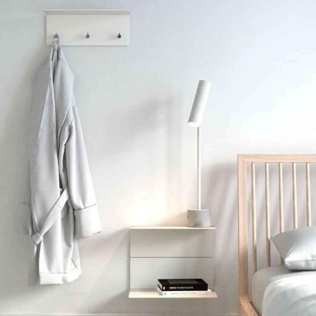Für die Unu Wandgarderobe 40x15x15cm verwenden die Designer eine langlebige Materialkombination: Die als Winkel gestaltete Wandhalterung besteht aus Aluminium und hat drei Haken aus Edelstahl. Die Montage erfolgt über die senkrechte Seite der Garderobe, deren Oberfläche matt gestaltet und in mehreren Farben erhältlich ist. Die Haken haben eine zylinderförmige Basis und ein rechteckiges, senkrecht stehendes Ende. Diese einzigartige Konstruktion sorgt dafür, dass daran aufgehängte Kleidungsstücke nicht herunterfallen. Die Haken sind in verschiedenen Farben zu haben und haben eine wahlweise matte oder polierte Oberfläche. Der waagerechte Teil der Unu Wandgarderobe 40x15x15cm wird gerne als Ablagefläche für Schlüssel und andere kleine Utensilien verwendet.