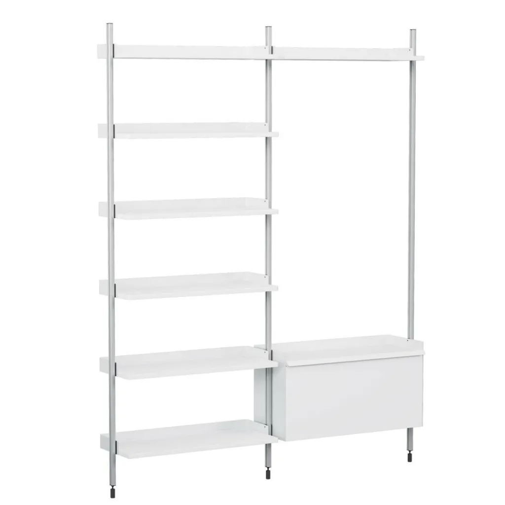Den Ansprüchen modernen Wohnens wird das Pier System 152 Regal in perfekter Manier gerecht. Beim Pier System 152 Regal handelt es sich um ein richtiges Stauraumwunder. Sollte man noch mehr Platz benötigen, lässt es sich nach Belieben erweitern. Es braucht nicht viel Zeit, um das Regal zusammenzubauen. Das Gestell besteht aus schlichtem Stahlrohr und wird um sieben Einlegeböden ergänzt. Sie bestehen aus Aluminium. Aus demselben Material ist eine kleine Box gefertigt, die mit einer Tür verschlossen wird. Sie ist mit einem praktischen Magnetverschluss versehen.