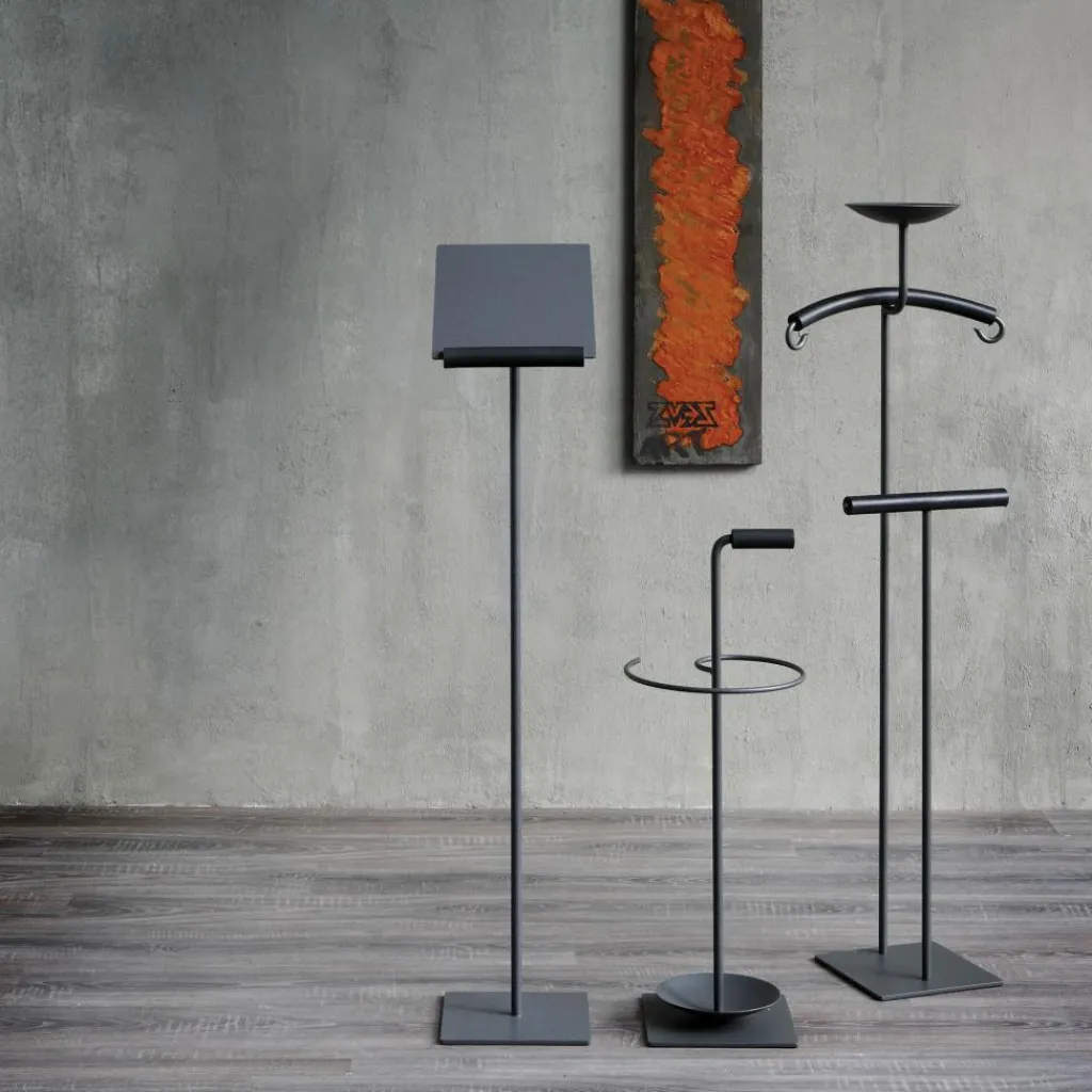 Der Servus Garderobenständer wurde von Maurizio Peregalli für die Marke Zeus entworfen. Das schliche Möbelstück wurde im Jahr 1993 vorgestellt. Der Name des Servus Garderobenständers stammt aus dem Lateinischen und bedeutet auf Deutsch Diener. Und tatsächlich ist er stets zu Diensten, wenn es darum geht, die Jacke oder den Mantel aufzuhängen. So sind die Kleidungsstücke griffbereit, wenn man das Haus das nächste Mal verlässt.