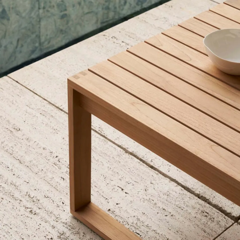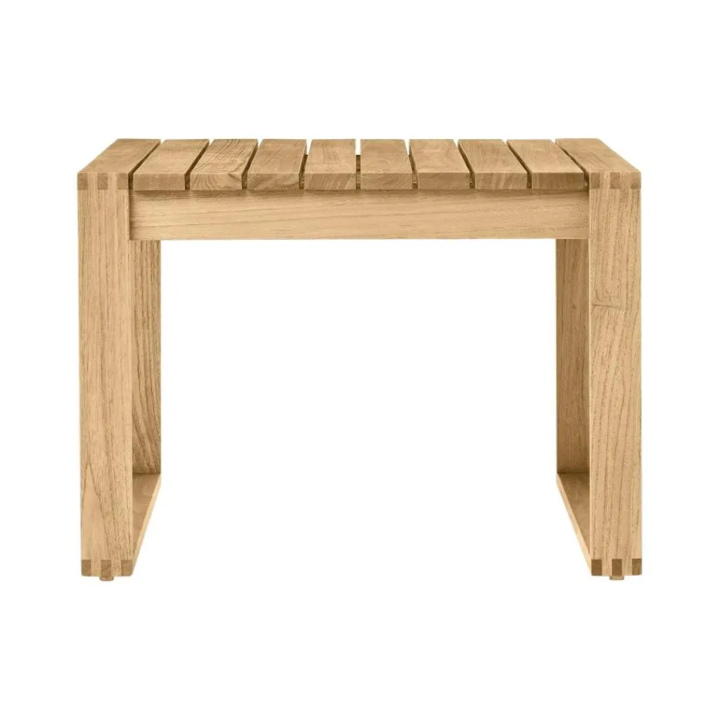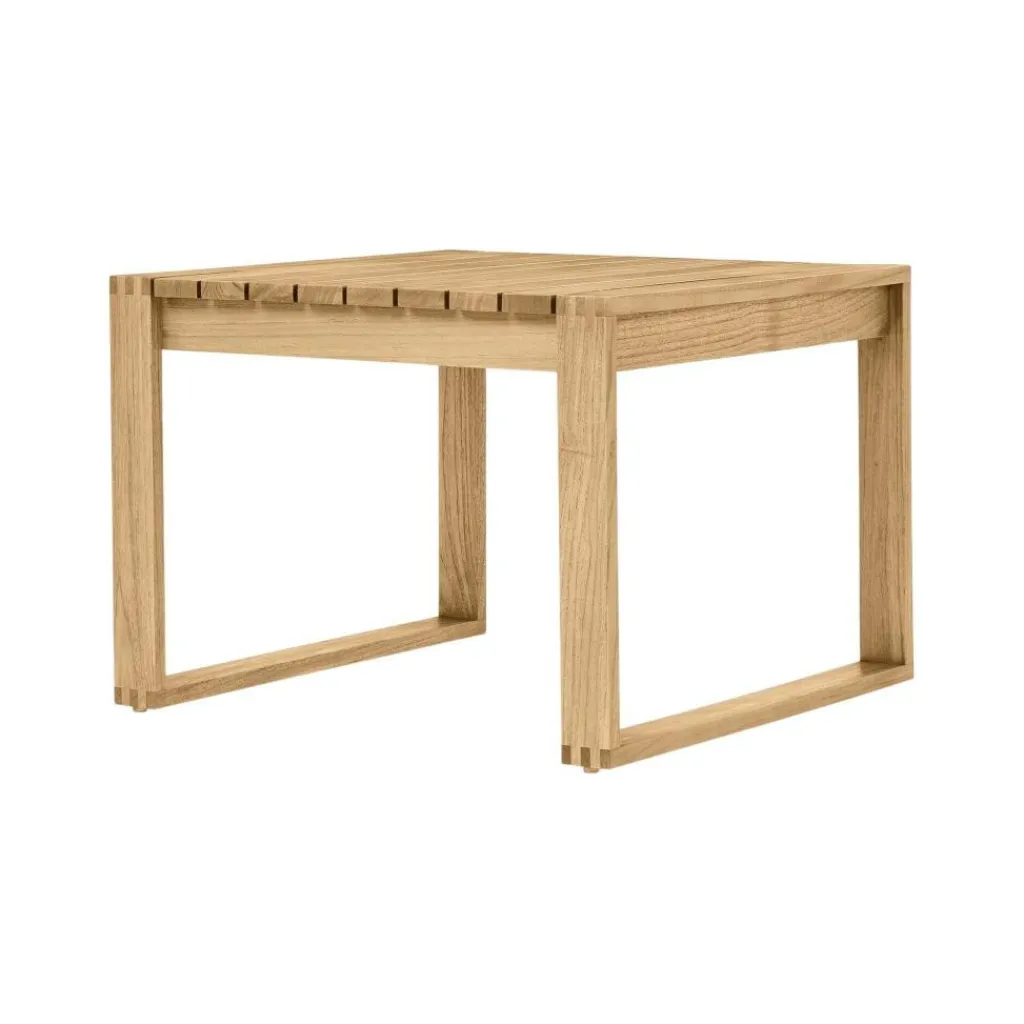 Die von der dänischen Designerin geschaffene Serie zeichnet sich durch ihre klaren Linien, perfekte Proportionen und die Verwendung von hochwertigem, nachhaltig gewonnenem Teakholz aus. Der BK16 Garten Beistelltisch überzeugt durch ein kubistisch inspiriertes Design mit einer geradlinigen Struktur. Seine rechteckige Tischplatte besteht aus schmalen, parallel angeordneten Holzlatten, die eine natürliche Eleganz ausstrahlen und gleichzeitig für eine optimale Wasserableitung sorgen. Die klar definierten Tischbeine und Querverstrebungen greifen dieses Lattenmotiv auf und verleihen dem Tisch eine harmonische Einheitlichkeit. Mit seinen kompakten Maßen von 69 cm Länge, 66 cm Breite und 47 cm Höhe ist der kompakte Tisch ideal als Beistelltisch für Lounge-Bereiche, Terrassen oder Balkone geeignet. Der BK16 Garten Beistelltisch ergänzt perfekt die Gartenstühle, Sofas und Liegen der BK-Serie von Carl Hansen und lässt sich vielseitig kombinieren.