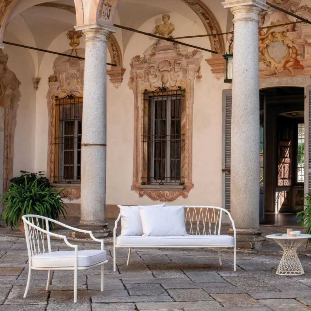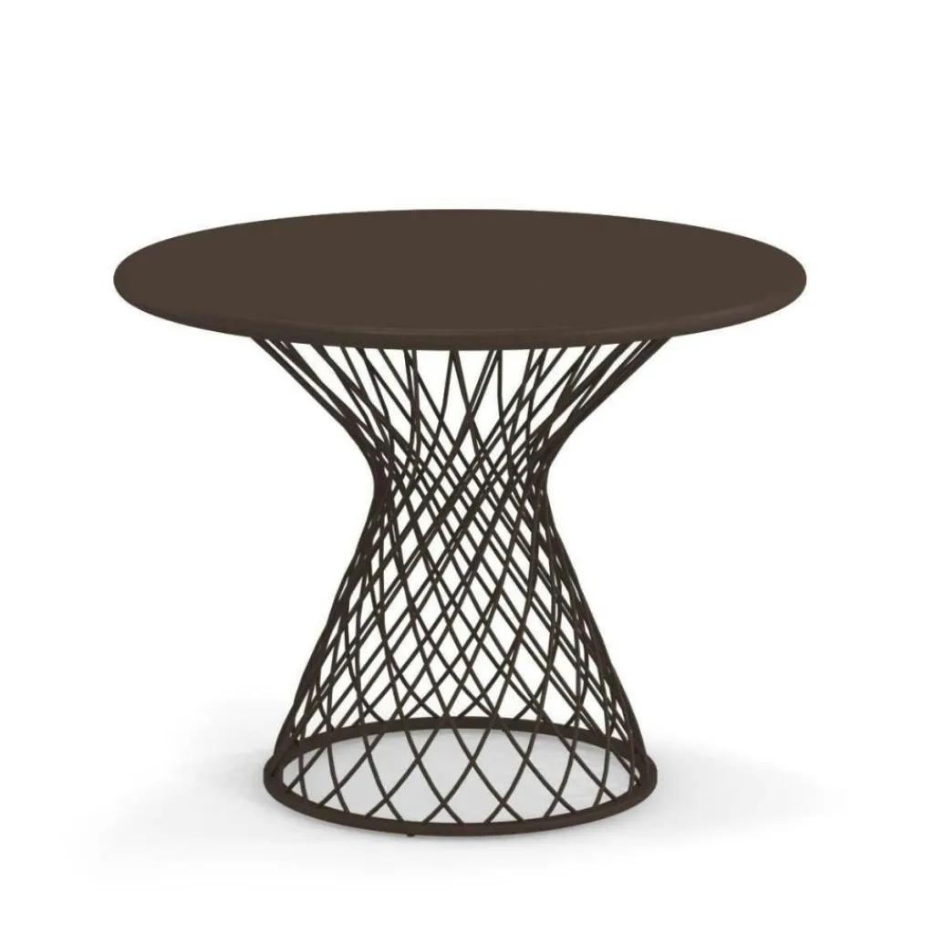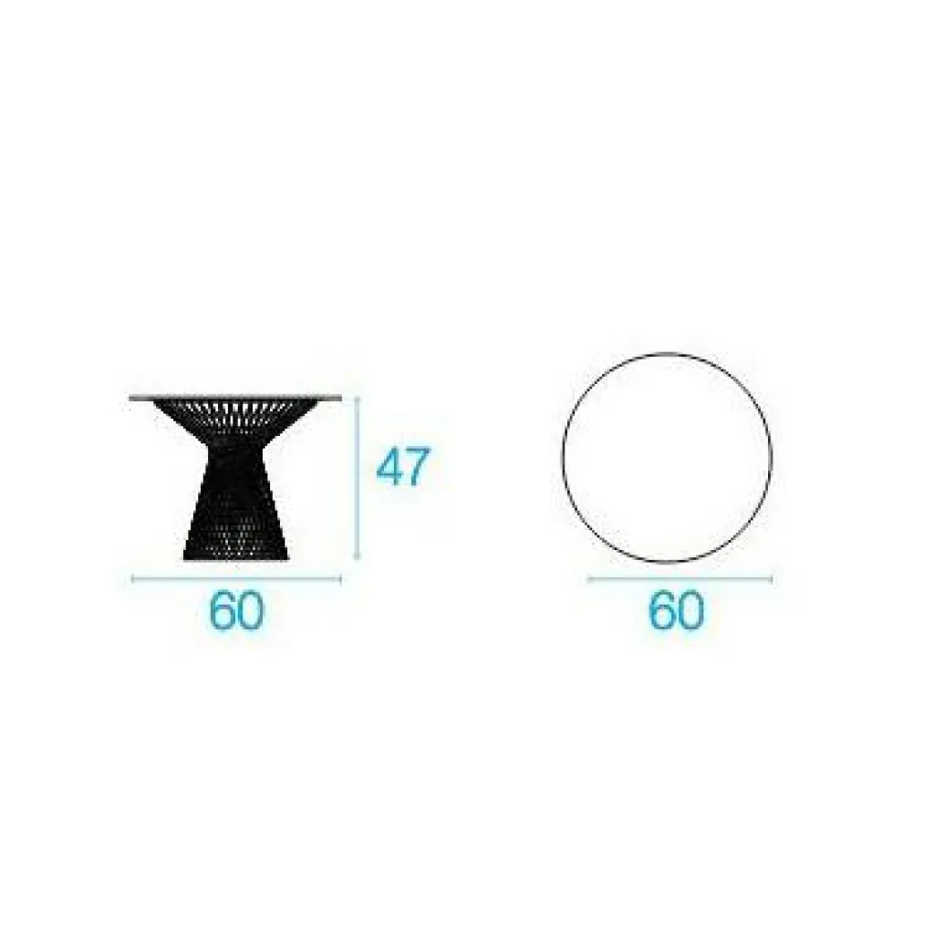 Der Heaven Garten-Beistelltisch Stahl Ø60cm begeistert durch seine Eleganz und optische Leichtigkeit. Die Tischplatte scheint beinah schwerelos auf einem dünnen Stahlgewebe zu schweben. Das Untergestell des Beistelltisches ist als Zylinder geformt, dessen Taille sich stark verjüngt. Dadurch erhält das filigrane Geflecht seine außerordentliche Stabilität. Der Tisch fügt sich durch seine transparente Silhouette harmonisch in jede Umgebung ein. In Gärten und auf Terrassen lässt das durchsichtige Untergestell den Blick auf Blumen und Pflanzen frei.