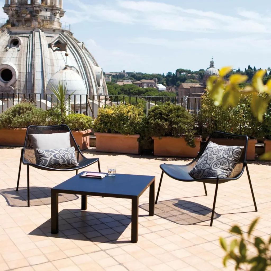 Der Round Garten-Beistelltisch 80x80x42cm wurde von Christophe Pillet für die Marke Emu entworfen. Er ist Teil einer modernen Gartenmöbel-Kollektion, deren formales Design von der Funktion der jeweiligen Möbelstücke geprägt ist. Während die Round-Sitzmöbel mit ergonomischen Schwüngen auffallen, bestechen die Tische mit ihrer Geradlinigkeit.