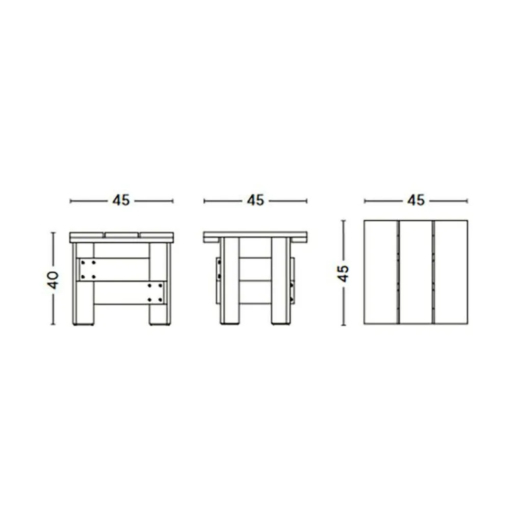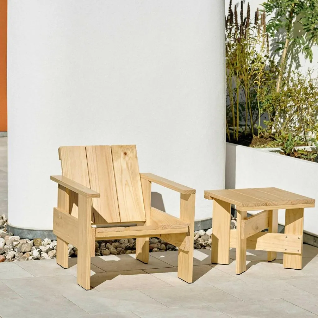 Der Crate Gartenbeistelltisch 45cm wurde von Gerrit Rietveld für die Marke HAY entworfen. Er gehört einer Kollektion von Gartenmöbeln an, die 1934 entworfen wurden. Heute wirkt das Konzept des niederländischen Designers, der für die Crate-Möbel hölzerne Transportkisten verwendet, moderner denn je.