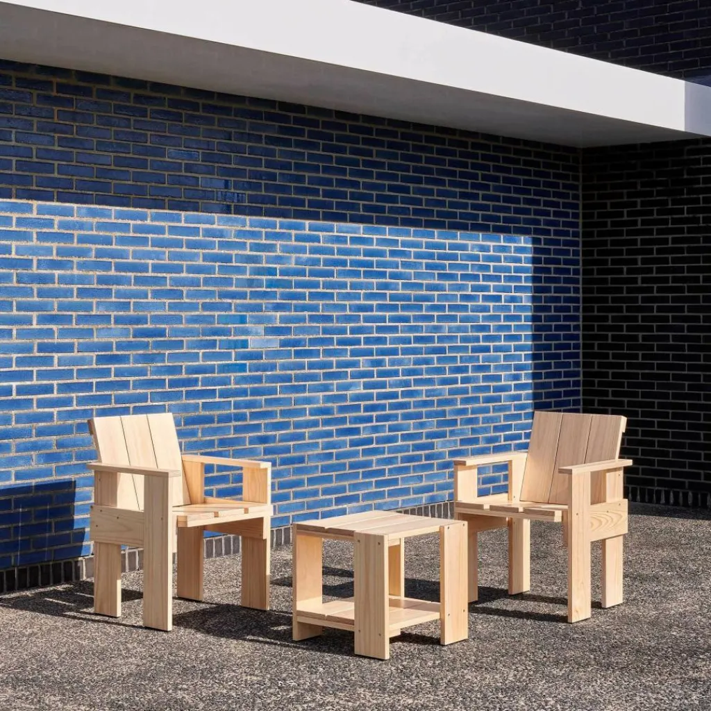 Der Crate Gartenbeistelltisch 49,5cm wurde von Gerrit Rietveld für die Marke HAY entworfen. Als Teil einer Möbelserie, die 1934 entwickelt wurde, zählt dieses Gartenmöbel zu den Klassikern des Outdoor-Möbeldesigns. Die Verarbeitung hölzerner Transportkisten macht ihn zu einem modernen Gartenmöbel.