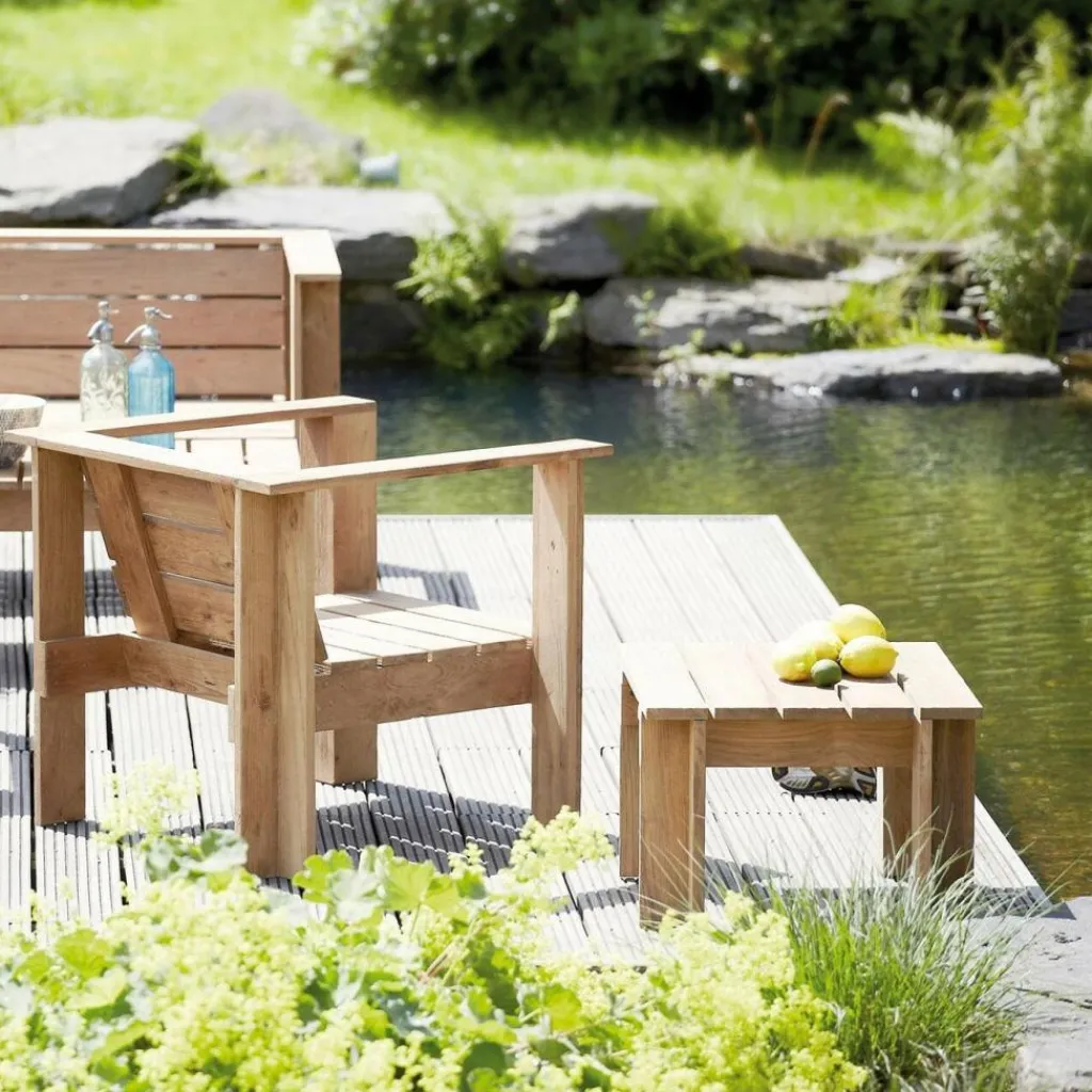 Der Batten Beistelltisch von Jan Kurtz ist aus massivem und äußerst wetterbeständigem Teakholz gefertigt. Alle Beschläge bestehen aus rostfreiem Metall.