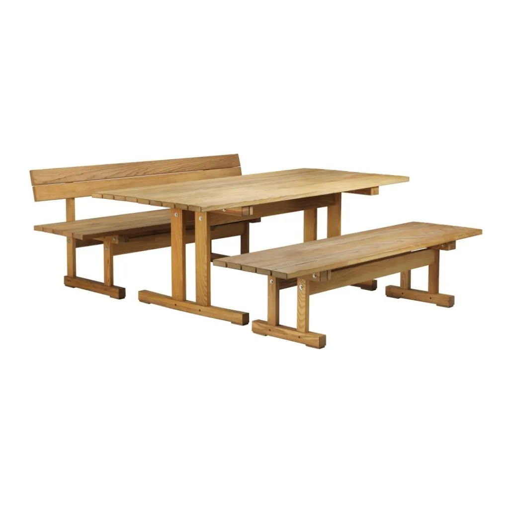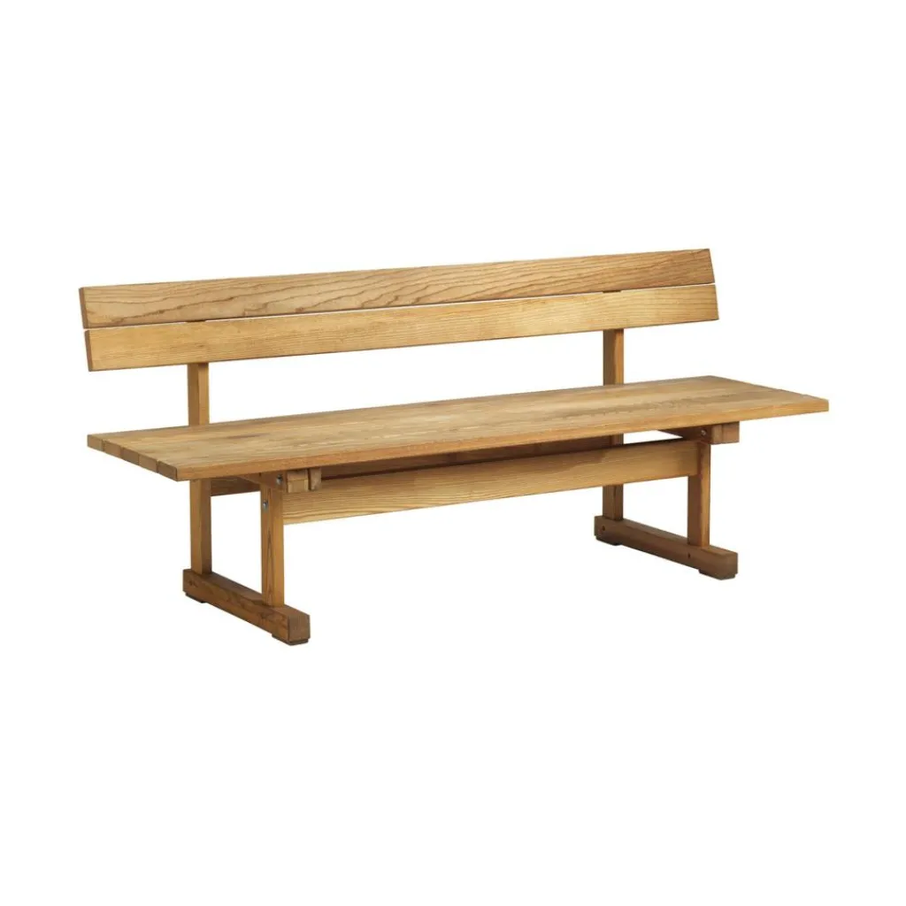 Die M16 Ermelunden Gartenbank mit Rückenlehne 3-Sitzer wurde von Børge Mogensen für die Marke FDB Møbler entworfen. Sie ist Teil der Ermelunden-Serie mit Gartenmöbeln aus massivem Holz.