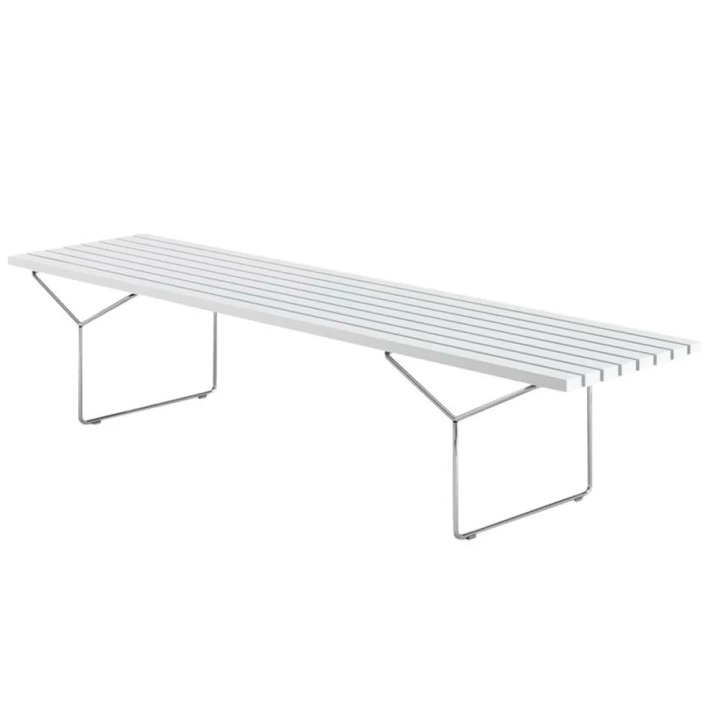 Die Bertoia Gartenbank 183cm wurde vom italoamerikanischen Designer Harry Bertoia für den Hersteller Knoll entworfen. In jungen Jahren besuchte Bertoia seinen Bruder in Detroit und war von der Metropole so begeistert, dass er sich entschied zu bleiben. Klassisch, schlicht, edel – Bertoias Ausbildung in den Staaten in Kunst, Design und im Handwerk des Juweliers macht sich in seinen Design-Stücken bemerkbar.
