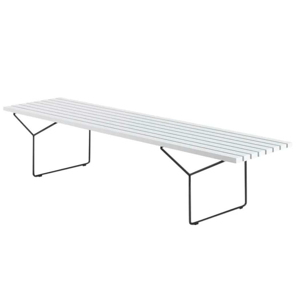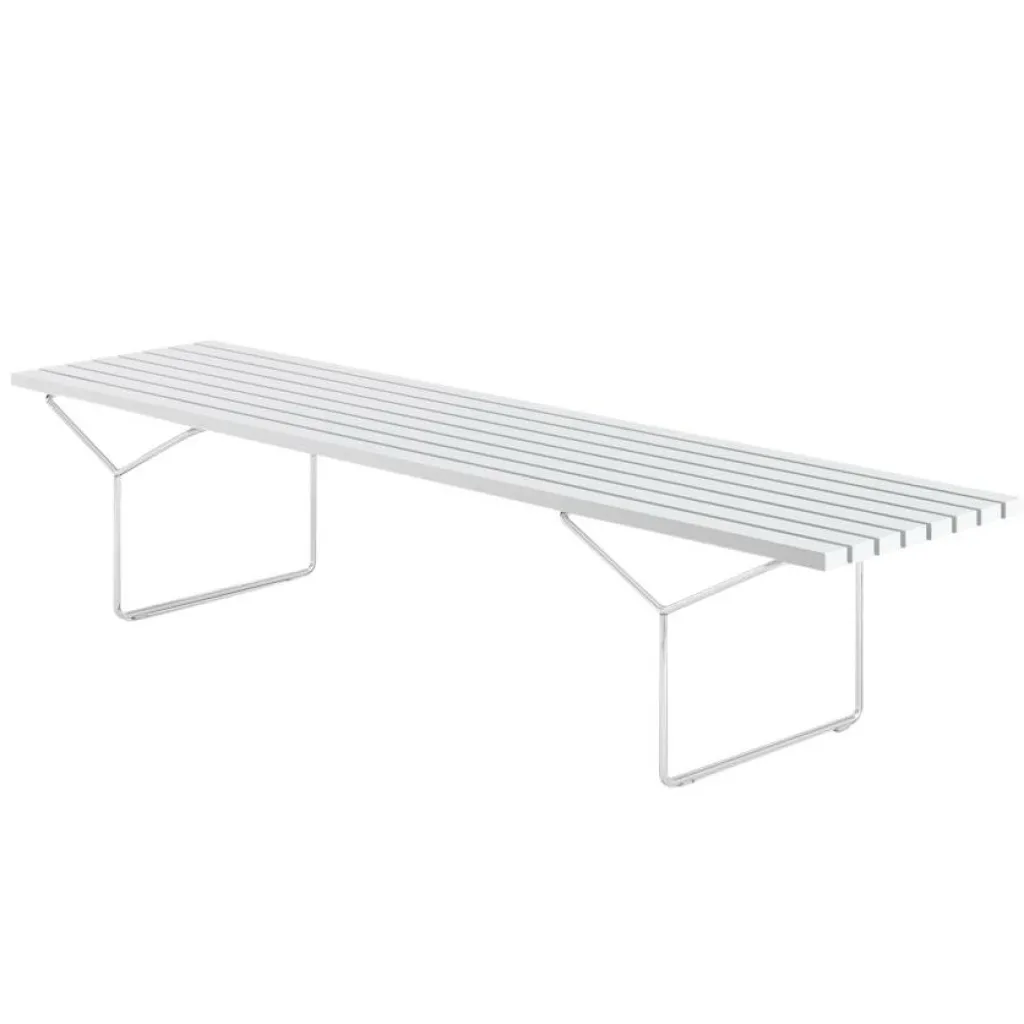 Die Bertoia Gartenbank 183cm fügt sich mit dem klaren Design Bertoias unbemerkt in Ihren Garten ein. Es besteht die Auswahl zwischen einem Gestell aus Teak oder aus Edelstahl. Für die Sitzfläche der Bertoia Gartenbank, bei der eine verschiedene Markierung möglich ist, wurden die Materialien Holz und Rilsan verwendet.