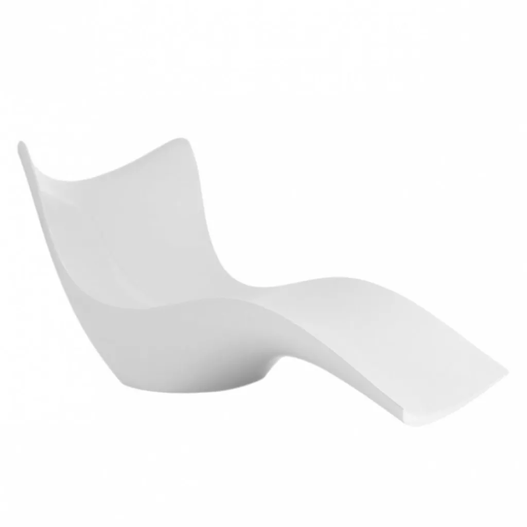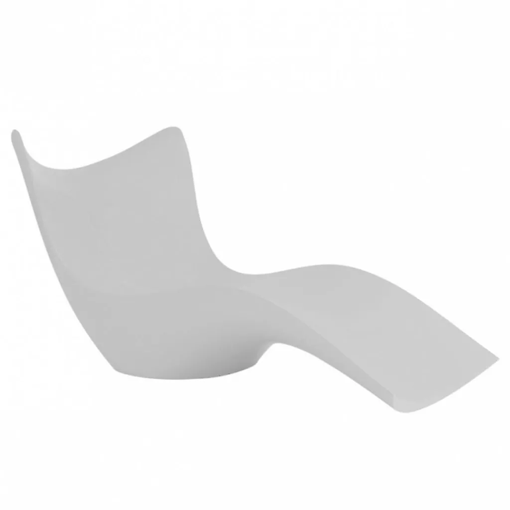 Ein homogener Schwung kennzeichnet die Surf Sonnenliege und lässt sie wie die Schaumkrone einer Welle im Meer aussehen. Sie hat die Form einer Schale, die dank einer ebenen Fläche in der Mitte fest auf dem Boden steht. Daneben berührt die Surf Sonnenliege nur an einem Punkt des Fußendes den Boden, während ihre Lehne großzügig in die Höhe ragt. Die Innenseite der Schale wirkt weich und die beiden Ecken der Rückenlehne sind sanft abgerundet. Eine schmale Kante lässt die Schale besonders dünnwandig erscheinen. Veränderungen des Lichteinfalls erzeugen auf der abgerundeten Fläche der Innenseite einen variierenden Schattenwurf. Die Surf Sonnenliege ist aus Polyethylen gegossen und damit langlebig und robust. Sie passt gut zu Holz- und Glasflächen am Pool und ist auch in der Wiese ein extravaganter Blickfang.