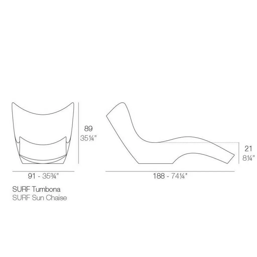 Die Surf Sonnenliege ist 200 cm lang, 90 cm hoch und genauso breit. Die Sitzhöhe beträgt 21 cm. Mit einem Gewicht von 25 kg kann die Surf Sonnenliege stabil stehen, ohne zu kippen. Sie ist in mehreren Farben sowie in matten oder glänzenden Ausführungen erhältlich.