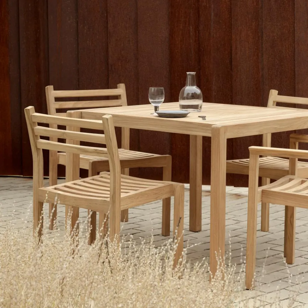 Sein geradliniges Design macht den AH501 Gartenstuhl zum modernen Hingucker. Dessen Lehne fällt mit einem formschönen Knick auf. Rahmen und Beine sind kantig geformt. Auch die Füllungen von Sitzfläche und Rückenlehne bestehen aus Kanthölzern, die jedoch einen sanften ergonomischen Schwung aufweisen, sodass der AH501 Gartenstuhl einen bequemen Sitzkomfort verspricht. Gefertigt aus hochwertigem Teakholz, das aus FSC®-zertifizierter Produktion stammt, zeichnet sich das Gartenmöbel als nachhaltige Wahl aus. Eine Serie von Stühlen passt perfekt rund um den Terrassentisch und eignet sich ebenso in einem Atrium oder einer Gartenlaube. Kombiniert mit den quadratischen oder rechteckigen Tischen der Kollektion macht sich der AH501 Gartenstuhl auch gut in einem Terrassencafé.