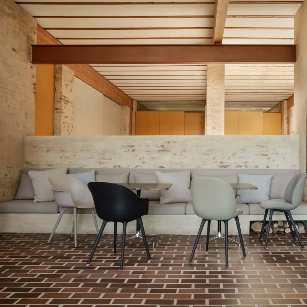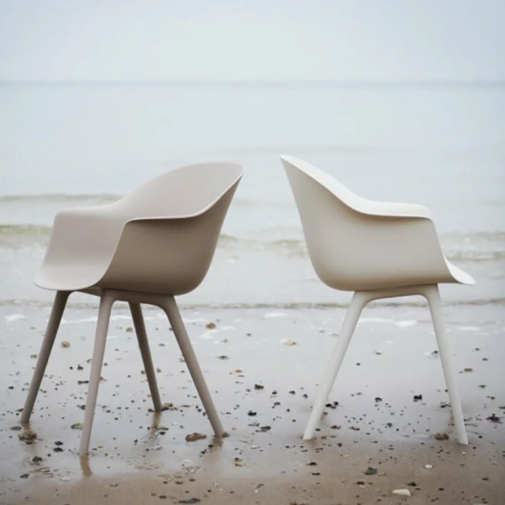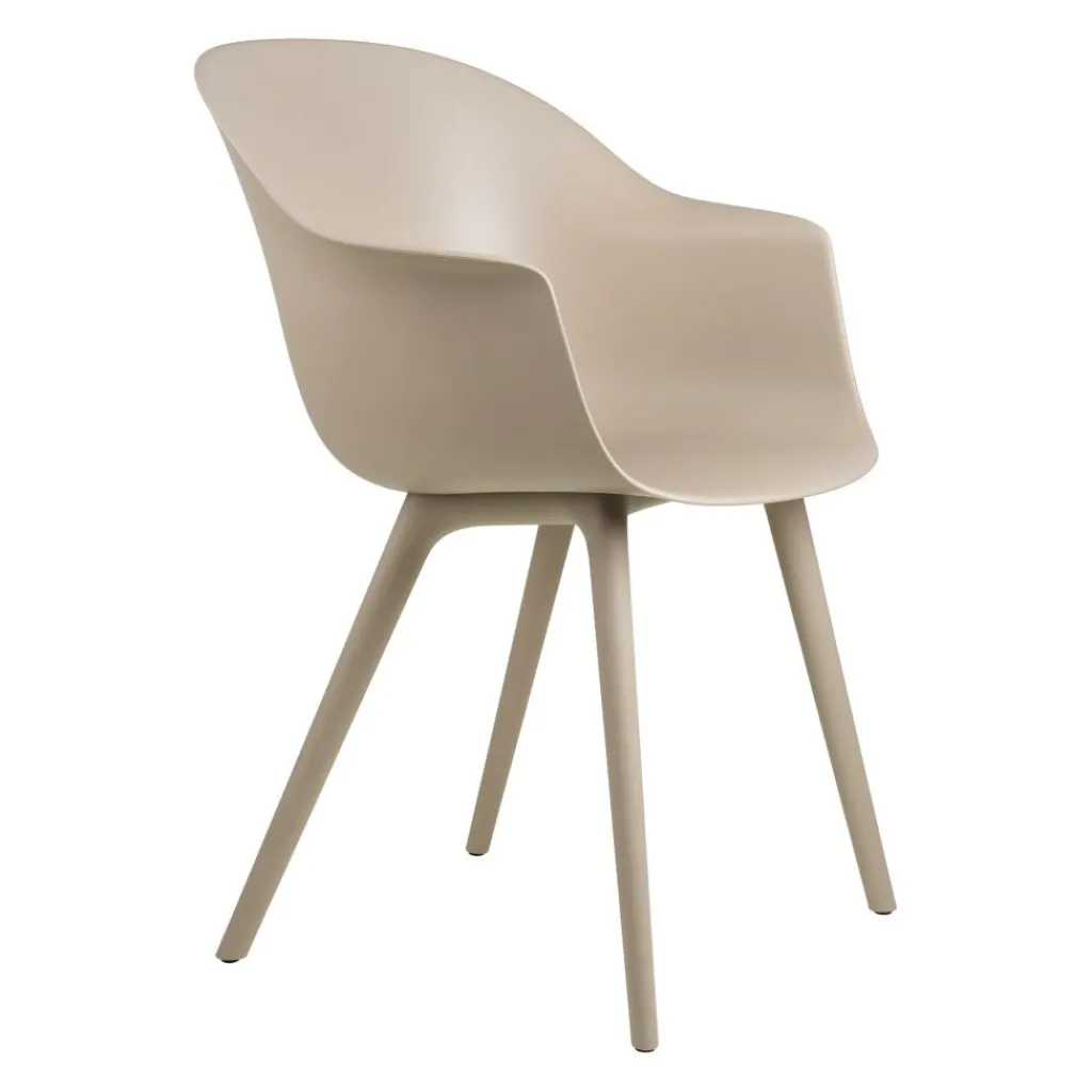 Der Bat Gartenarmlehnstuhl wurde von GamFratesi für die Marke Gubi entworfen. Dabei handelt es sich um die Outdoor-Version der beliebten Bat-Serie, die erstmals auf der Möbelmesse in Mailand im Jahr 2019 vorgestellt wurde. Aus derselben Kollektion gibt es auch Stühle, Lounge-Sesseln und andere elegante Sitzgelegenheiten.