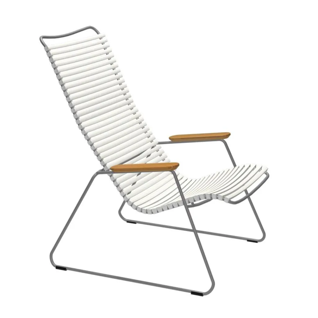 Der Click Loungestuhl des dänischen Herstellers HOUE ist ein stilvoller und komfortabler Outdoor-Stuhl, der mit seiner innovativen Click-Technologie begeistert. Seine klaren Linien und die markante Lamellenstruktur machen ihn zu einem echten Blickfang im Außenbereich. Entworfen wurde die Click Kollektion von Henrik Pedersen.