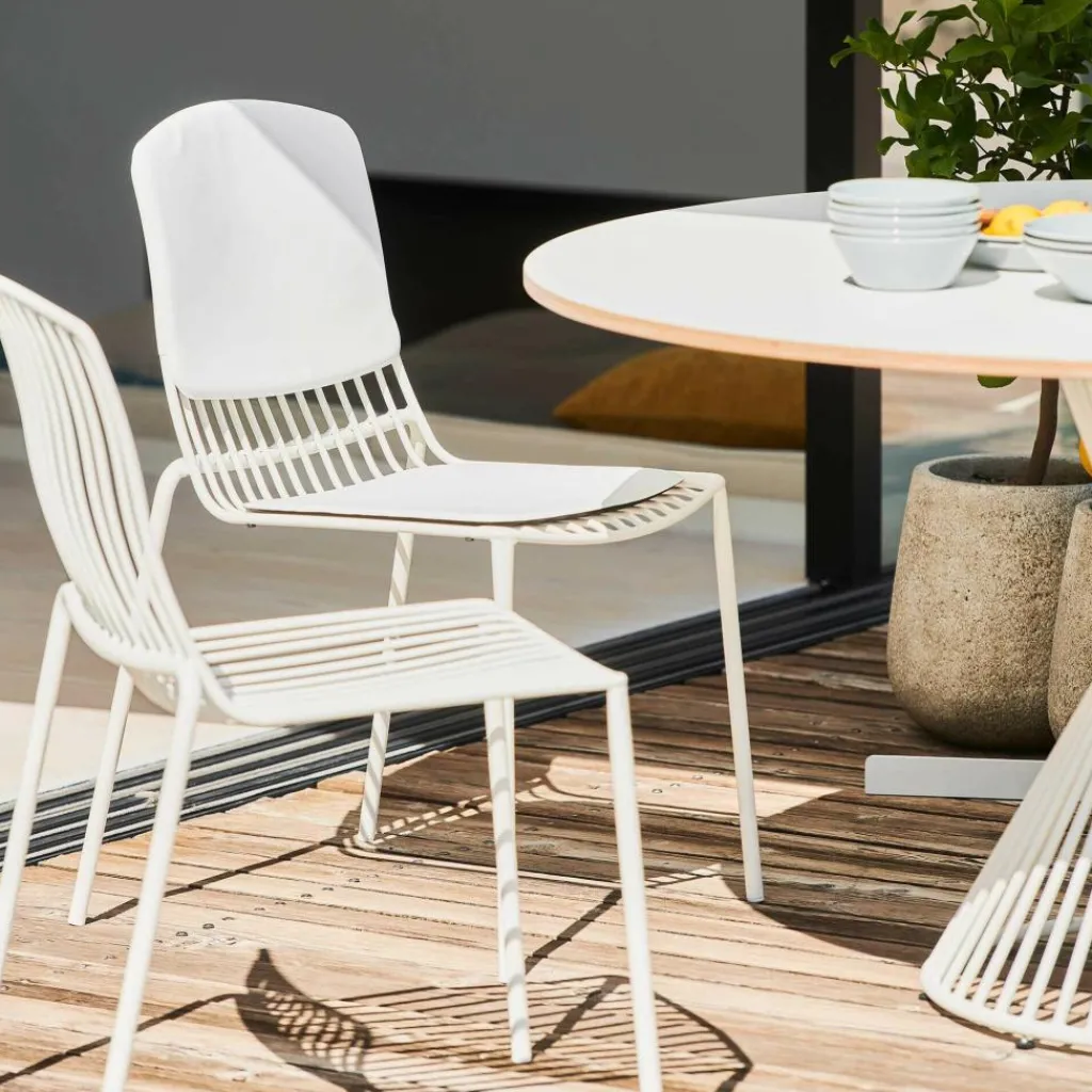 Der Mori Gartenstuhl wurde für die Marke Jan Kurtz entworfen. Sommerlich leicht und filigran ist der moderne Metallstuhl des aus Baden-Württemberg stammenden Designunternehmens ein bequemer Hingucker in jedem Außenbereich.