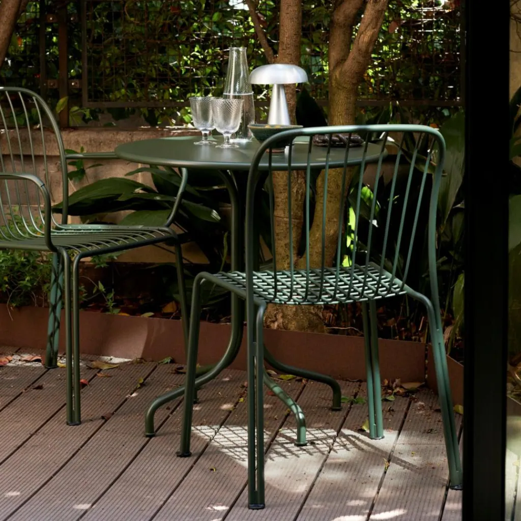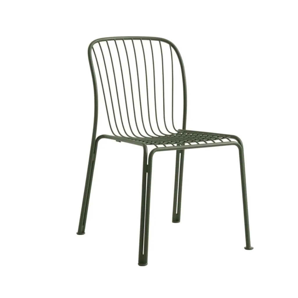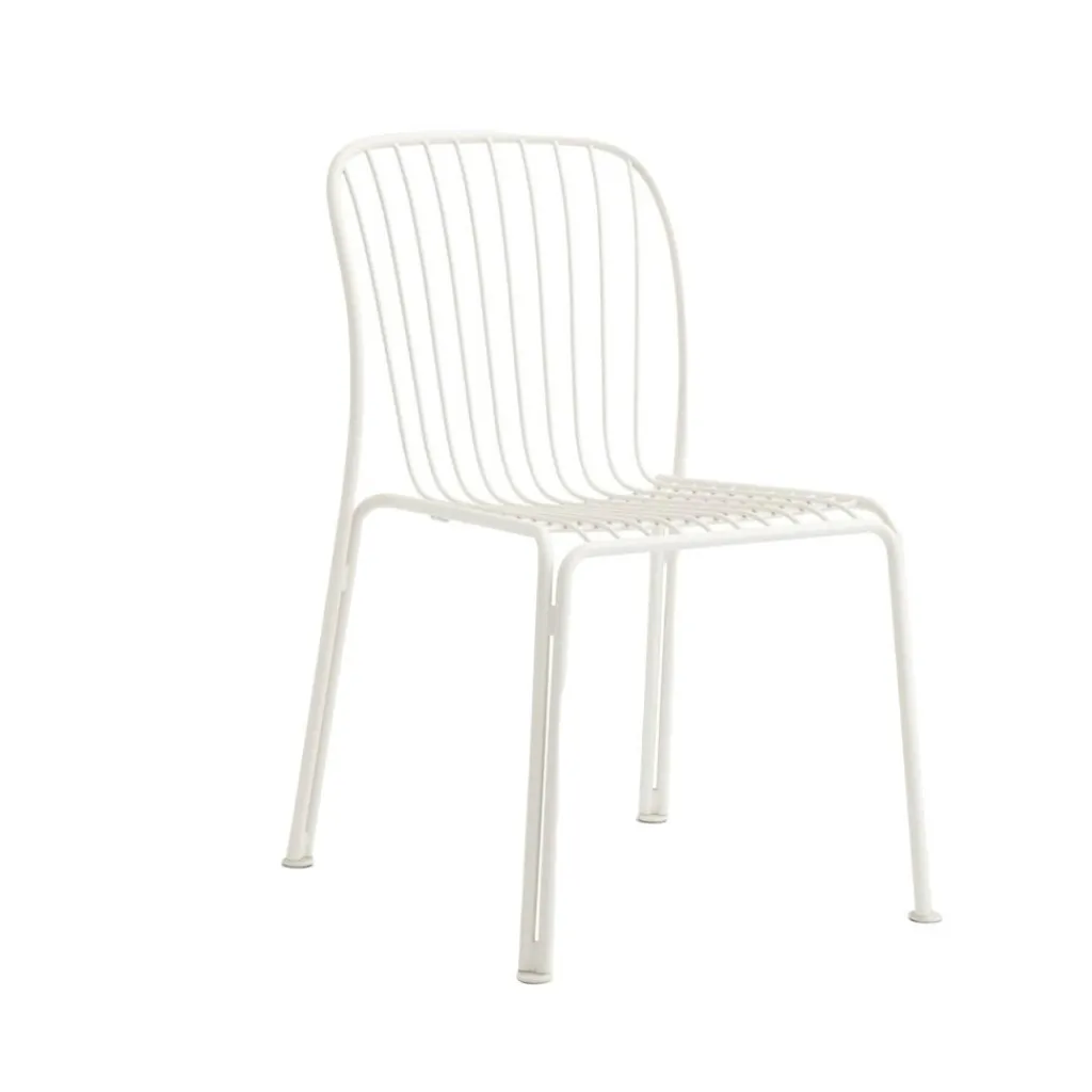 Ein Netz aus schlanken Gitterstäben bildet den Sitz dieses formschönen Designstuhls, der mit seinem ergonomischen Schwung ein angenehmes Sitzgefühl verspricht. Der Rahmen besteht aus vier gebogenen Rundstangen, deren Enden jeweils ein Beinpaar bilden, sodass sich jedes Stuhlbein aus einer Doppelstütze zusammensetzt. Diese raffinierte Konstruktion macht den Thorvald SC94 Gartenstuhl zu einem attraktiven Hingucker. Daneben beeindruckt der Schattenwurf der filigranen Stuhlelemente. Hergestellt aus robustem Stahl und mit einer matten Pulverbeschichtung versehen, besticht der Designstuhl mit seiner langlebigen Witterungsbeständigkeit. Er macht sich ebenso gut auf einer Terrasse wie in einem Wintergarten und kann auch mitten in der Wiese stehen. So passt er in ein Straßencafé, auf eine Hotelterrasse oder in den privaten Hausgarten.