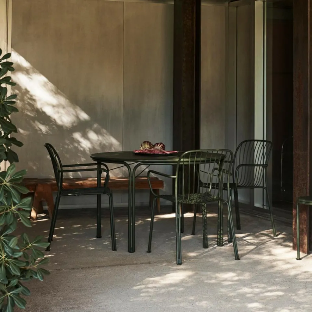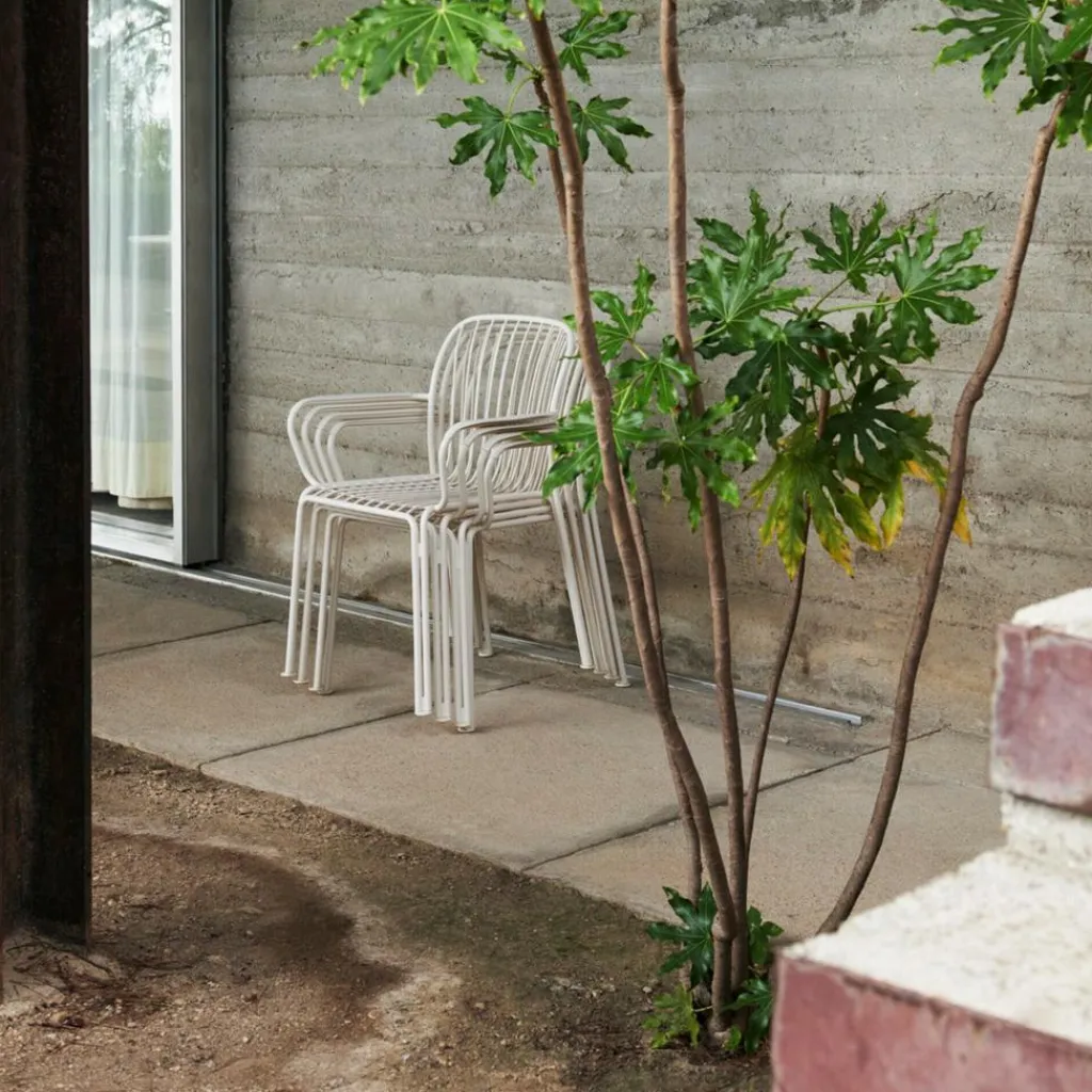 Der Thorvald SC95 Gartenarmlehnstuhl wurde von Space Copenhagen für die Marke &Tradition entworfen. Er gehört einer eleganten Gartenmöbelserie an, die von den Kunstwerken des dänischen Bildhauers Bertel Thorvaldsen beeinflusst ist.
