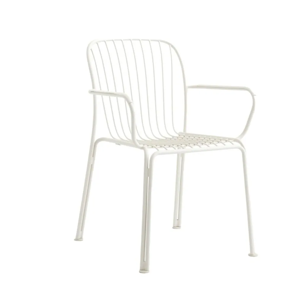 Mit seinem Sitz aus einem ergonomisch geschwungenen Gitternetz und den nach außen gebogenen Armlehnen verspricht der Thorvald SC95 Gartenarmlehnstuhl einen angenehmen Sitzkomfort. Das Stuhlgestell mit Kunststoffgleitern, das sich aus vier gebogenen Rundstangen zusammensetzt, garantiert einen stabilen und belastbaren Stand. Dabei bilden die Enden der schlanken Stäbe je zwei Beine, die mit den anderen Elementen jeweils zu Doppelstützen verbunden sind. Zusammen mit den luftigen Flächen von Sitz und Lehne macht diese raffinierte Konstruktion den Thorvald SC95 Gartenarmlehnstuhl zum reizvollen Blickfang, der im Sonnenlicht attraktive Schatten wirft. Aus hochwertigem Stahl gefertigt und mit einer Pulverbeschichtung versehen, eignet sich der robuste und witterungsbeständige Stuhl für den Einsatz im Freien. Er passt in ein Atrium-Restaurant, auf die Terrasse eines Designhotels oder in den Garten daheim.