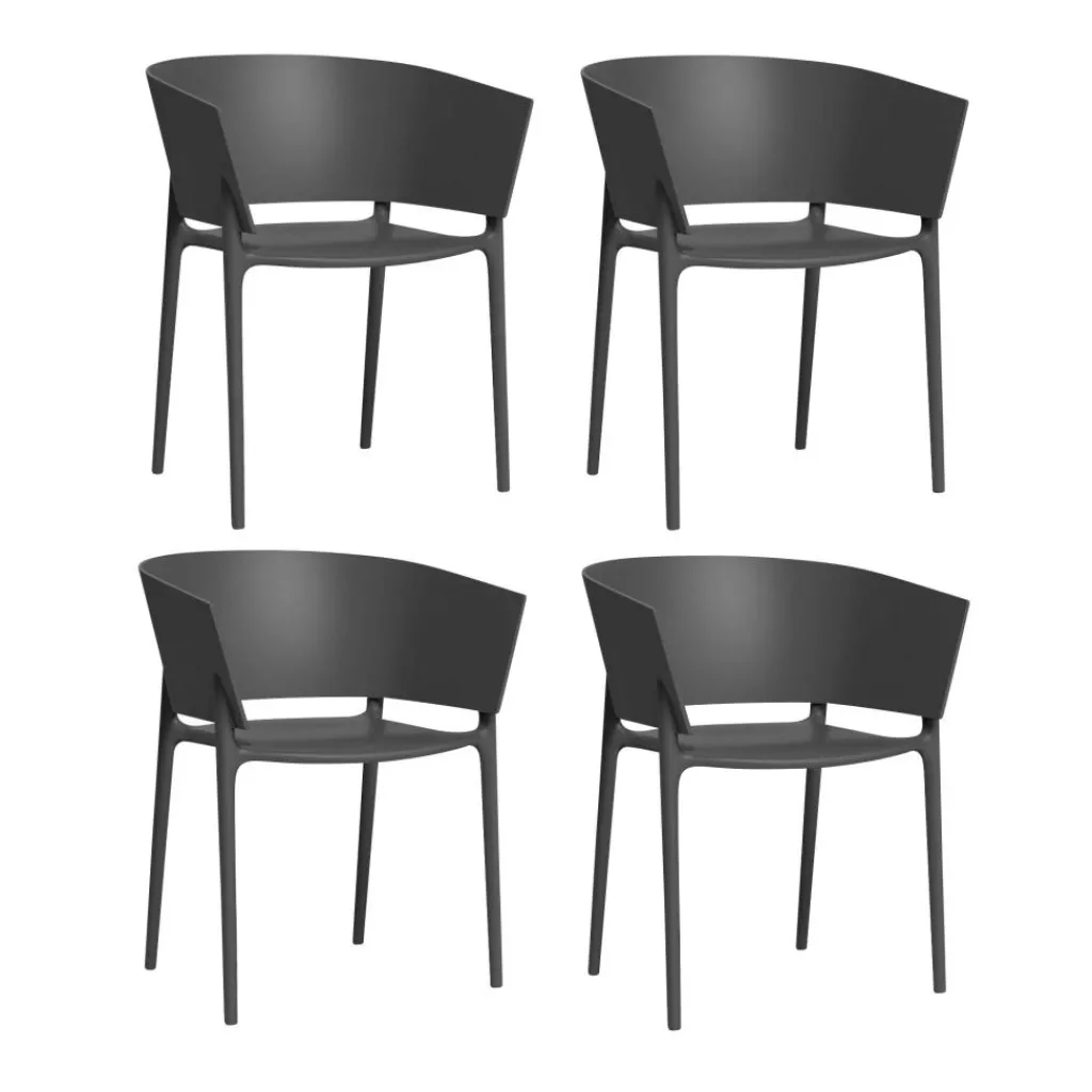 Das Africa Armlehnstuhl 4er Set ist eine stilvolle Sitzgelegenheit des Design-Experten Eugeni Quitllet für das Design-Label Vondom, das sich vor allem durch seine bewegte Gestalt und ihre hochwertige Verarbeitungsqualität auszeichnet.