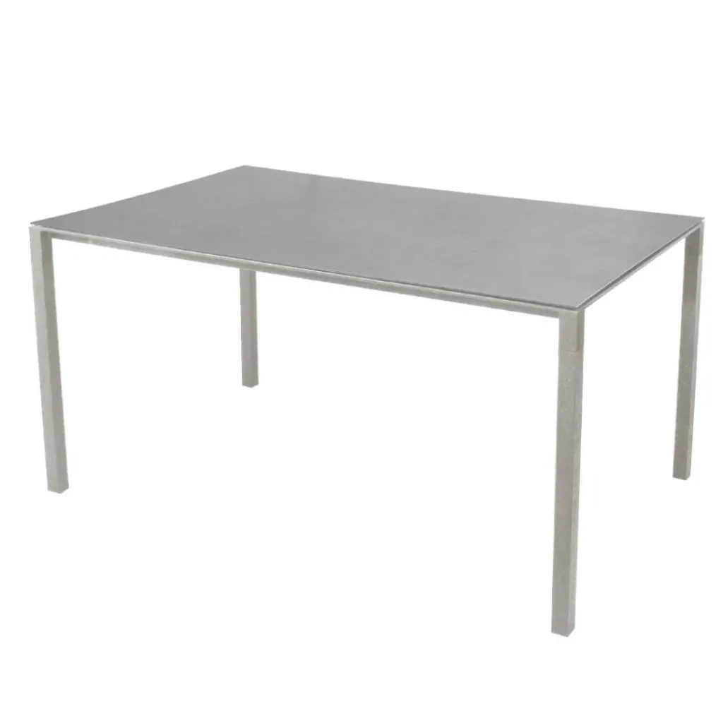 Die Pure-Kollektion wird mit ihren Tischen in unterschiedlichen Größen jedem Platzangebot gerecht. Allesamt sind sie aus langlebigen Materialien gefertigt. Das schlichte Gestell mit vier Beinen besteht aus Aluminium. Für die Tischplatte verwenden die Designer Keramik. Die Oberfläche des Pure Gartentisch 150x90cm ist kratzfest und sieht auch nach vielen Jahren aus wie neu. Außerdem erweist sich das Modell als äußerst pflegeleicht: Staub und Schmutz lassen sich einfach mit einem feuchten Tuch abwischen. Da ihm Nässe nichts anhaben kann, bleibt der Tisch auch bei Regen im Freien. Das Material ist darüber hinaus UV-beständig und bleicht daher nicht aus. Das Modell wird zum beliebten Treffpunkt auf jeder Terrasse oder dem Balkon.