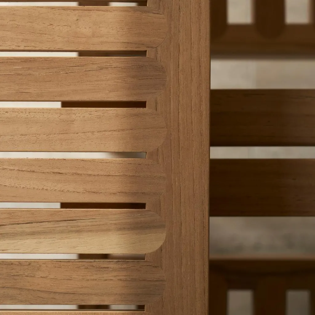 Bis zu acht Personen haben Platz an diesem geräumigen Gartentisch, der mit seinem schlanken Unterbau auch viel Beinfreiheit bietet. Den rhythmisch angeordneten Füllhölzern seiner Platte und den sanft abgerundeten Oberkanten an den Tischecken verdankt der AH901 Gartenesstisch 200x100cm seine elegante Optik, die ihn zum Blickfang auf der Terrasse, in einer Gartenlaube oder Atrium macht. So eignet sich das formschöne Möbel nicht nur für das private Zuhause, es macht sich auch gut auf der Terrasse eines Cafés oder Restaurants. Der Tisch besteht aus Teakholz, das aus zertifizierter Produktion in Vietnam stammt. Damit zeichnet sich der AH901 Gartenesstisch 200x100cm als ein nachhaltiges Designmöbel aus, dessen unbehandelte Oberfläche mit der Zeit eine attraktive Patina annimmt.