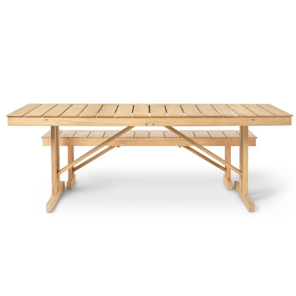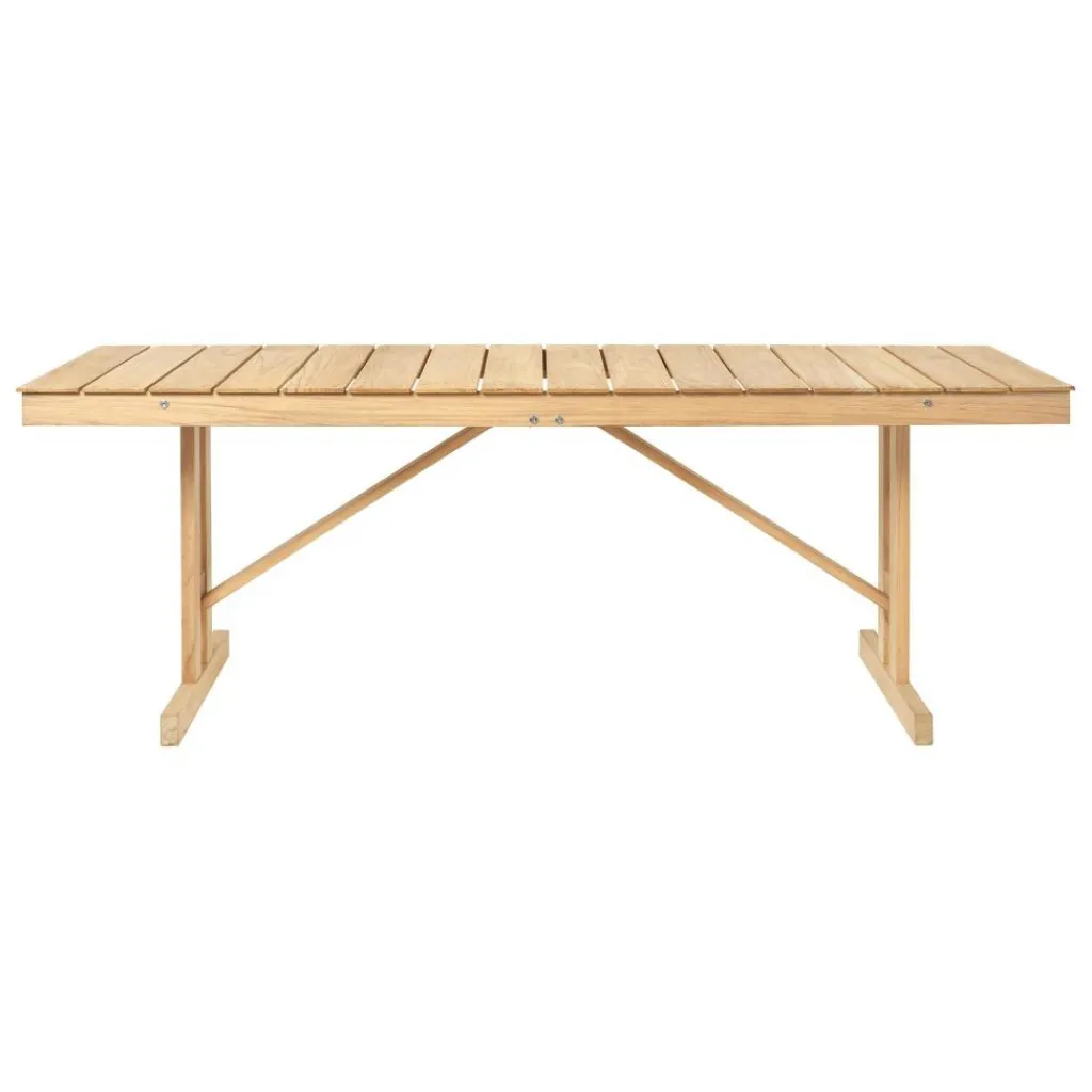 Den BM1771 Gartentisch entwarf Designer Børge Mogensen für die Marke Carl Hansen. Schon seit dem Jahr 1908 sieht sich der dänische Hersteller dem „Passionate Craftmanship“, der Leidenschaft für echtes Handwerk verpflichtet. Der Entwurf für den BM1771 Gartentisch stammt aus den 1970er Jahren und ist ein markantes Beispiel für diese handwerklich aufwendige und traditionsreiche Art des Möbelbaus. Designer und Hersteller haben auf alle dekorativen Elemente verzichtet und der Entwurf zeigt, dass die konsequente Reduktion auf reine Funktionalität zu einer nachhaltig ästhetischen Wirkung führt. Die Konstruktion verwendet massive Holzelemente, die schnörkellos zu einer Einheit zusammengefügt sind. So entsteht ein authentischer Eindruck von Solidität und großer Wertigkeit. In Gärten, auf Terrassen und Balkonen fügt sich dieser Tisch wunderbar in die Umgebung ein.