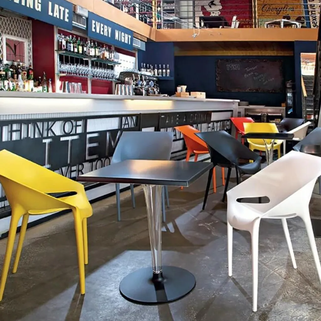 Der Top Top For Dr. Yes Gartentisch 60x60cm Gestell quadratischwurde von Philippe Starck und Eugeni Quitllet für Kartell entworfen. Aus einer Zufallsbekanntschaft im Jahr 2001 am Strand der kleinen Baleareninsel Formentera entwickelte sich in Folge eine erfolgreiche Zusammenarbeit zwischen dem französischen Altmeister Philippe Starck und dem jüngeren und talentierten Katalanen Eugeni Quittlet, die auch schon zuvor, jeder für sich, zahlreiche Auszeichnungen für ihre wegweisenden Arbeiten erhalten hatten.