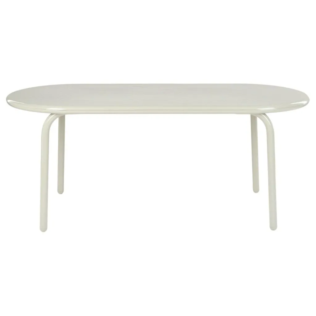 Insgesamt ging der Kollektion mehr als zehn Jahre Forschungsarbeit voraus. Hochwertige Materialien, fortschrittliche Fertigungstechniken und eine außergewöhnlich gute Haltbarkeit sind das Ergebnis dieser jahrelangen Recherche und Optimierung – der Groove Gartentisch 186x86cm ist Design in Hochleistung. Der Art-Déco-Stil des Tischs ist charakteristisch für die gesamte Kollektion: Eine ovale Tischplatte mit markanten Rillen, die der ovalen Form des Tischs folgen, treffen auf breite, rund geformte Tischbeine. Ein imposantes Design, das von den Groove Gartenstühlen und dem Groove Gartenhocker aufgegriffen und unterstrichen wird. Der Tisch ist für den Außenbereich geeignet und entworfen. Das hochwertige und langlebige Aluminium unterstreicht diese Eignung mit seiner Korrosionsbeständigkeit. Die ergänzende Pulverbeschichtung ist frei von Lösemitteln und VOC – das heißt, es wurden zum Beispiel keine Kohlenwasserstoffe, keine Alkohole und keine organischen Säuren verwendet. Der Gartentisch ist 186 cm lang und 86 cm breit. Durch die sanft nach außen gebogenen Tischbeinen entsteht viel Beinfreiheit längst der Tischplatte. Die Höhe beträgt 75 cm und das Gewicht 25,7 kg.
