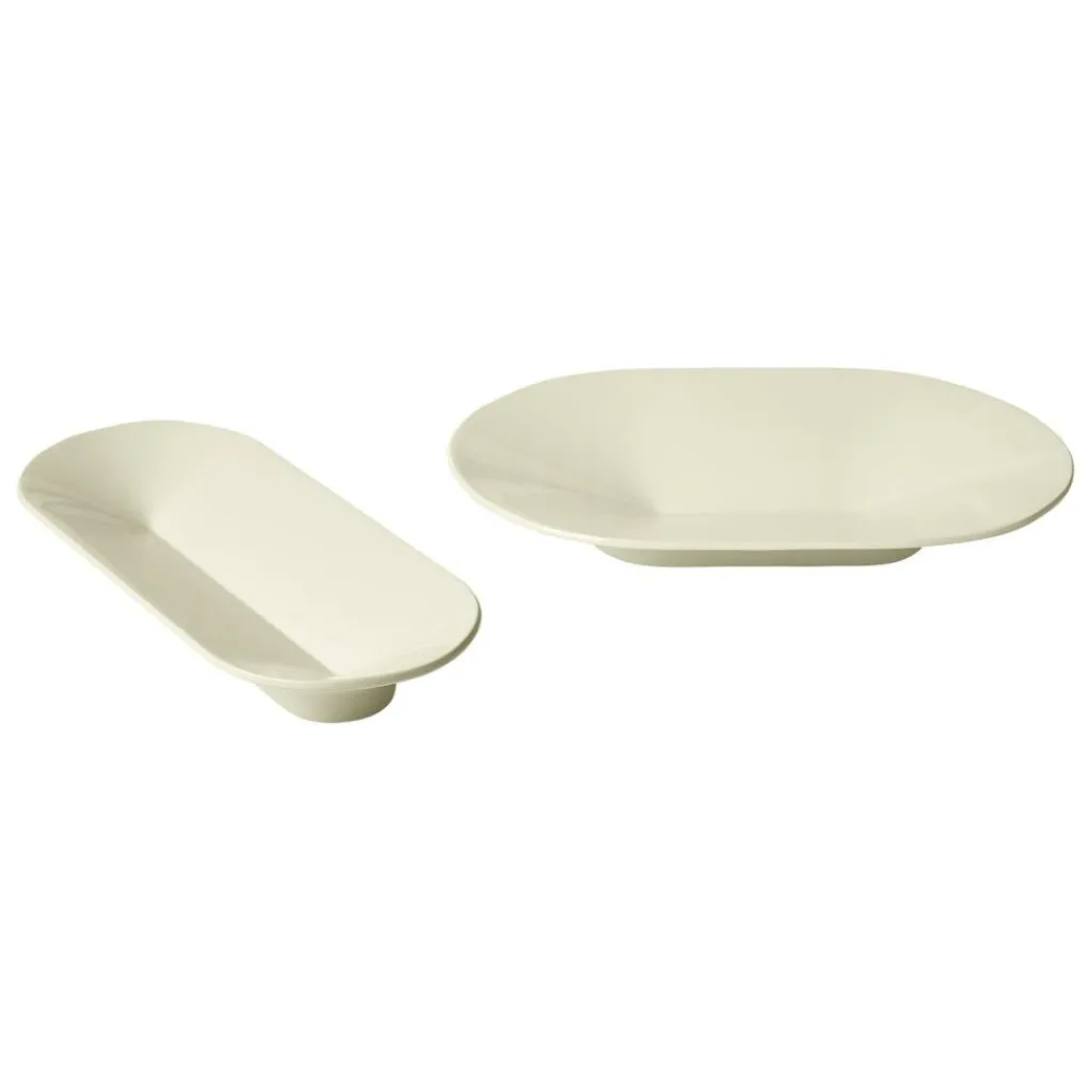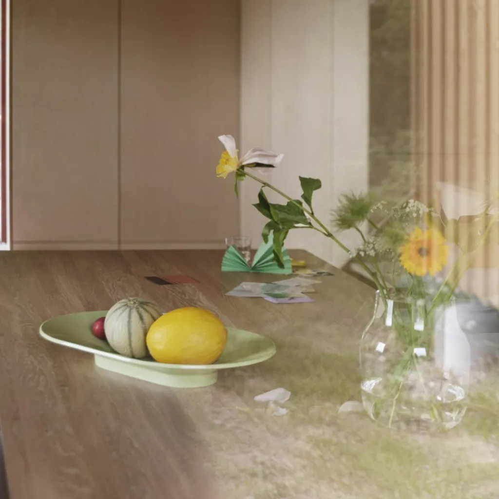 Die Mere Schale 52x36m wurde vom Studio Kaksikko für die Marke Muuto entworfen. Das Designstudio aus Helsinki entwarf sie im skulpturalen Design für den vielseitigen Einsatz als lebensmittelechte Schale für kleine Snacks auf dem Esstisch, als Obstschale auf der Theke in der Küche oder als saisonal dekorierter Blickfang auf dem Sideboard im Wohnzimmer.