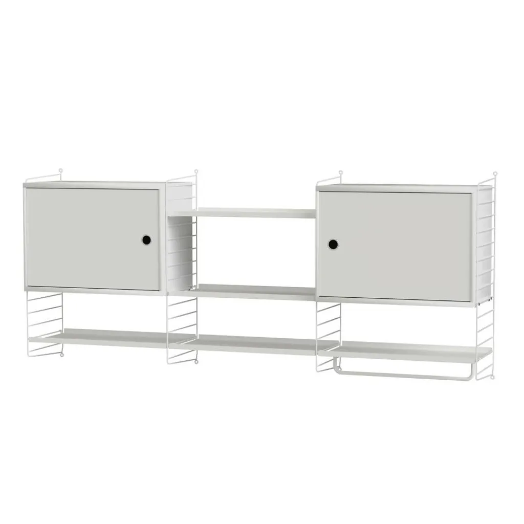 Das Küchenregal mit 2 Schrankelementen 180x75x30cm wurde von Nisse Strinning für die Marke String entworfen. Das praktische Aufbewahrungsmöbel kommt damit in jenen Raum zurück, in dem Strinnings Karriere begann. Das System hat seinen Ursprung nämlich in einem Abtropfgestell mit dem Namen Elfa. Daraus gewann der nordische Designer seine Inspiration für ein Bücherregal, mit dem er im Jahr 1949 an einem Wettbewerb eines schwedischen Verlages teilnahm.
